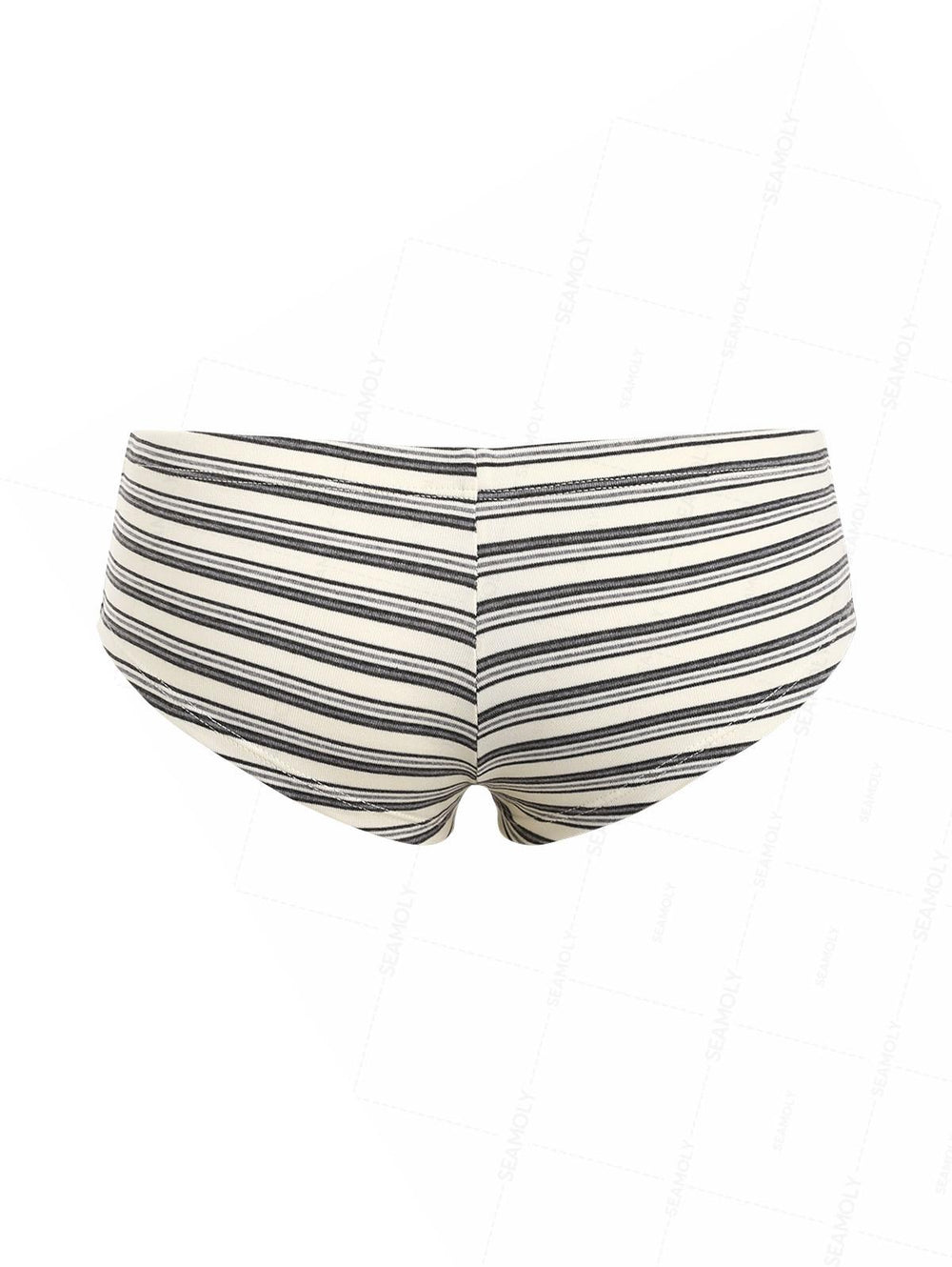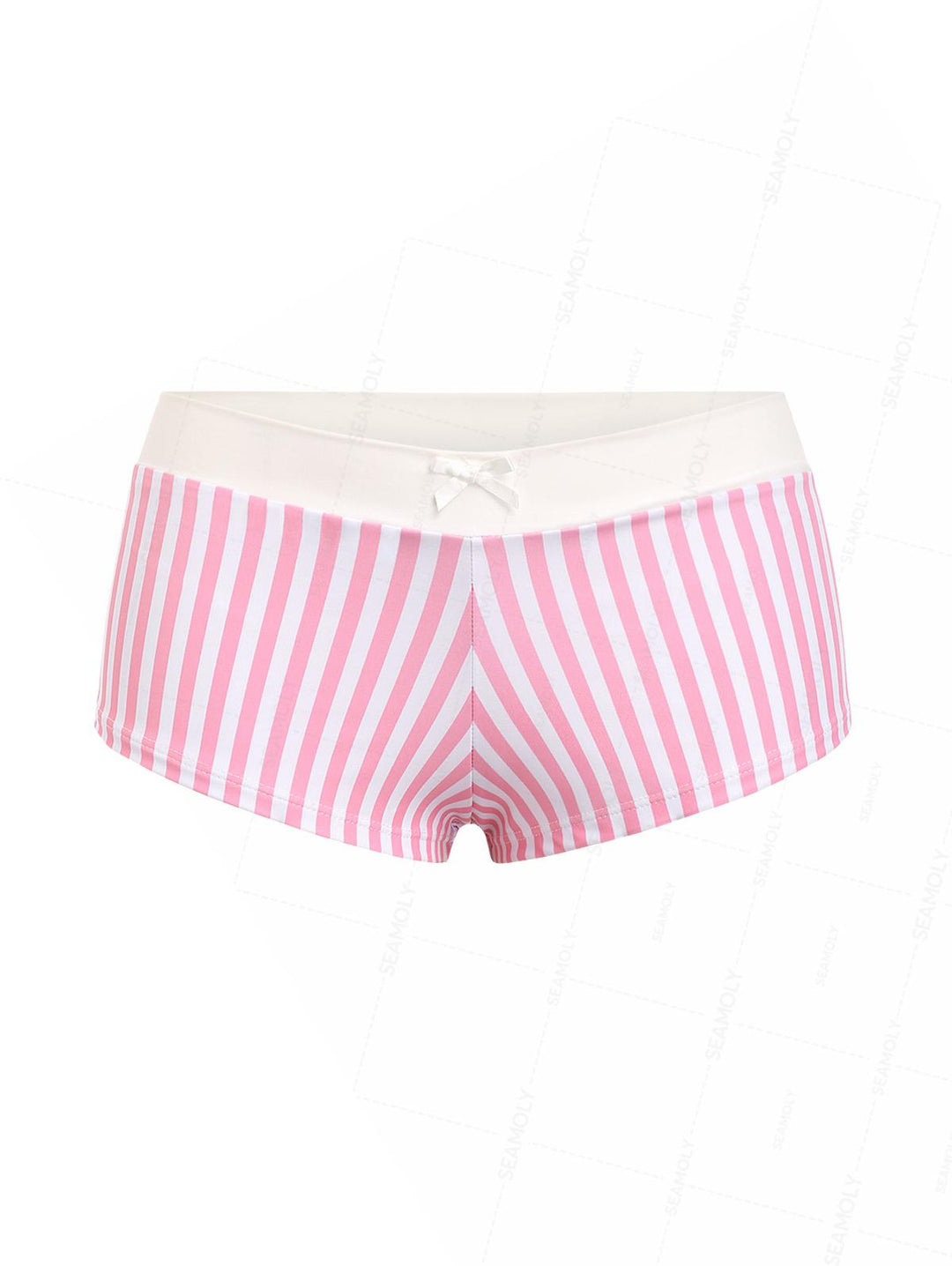 Seamolly Striped Bowknot Mid Rise Swim Bottom Bikini Boyshorts