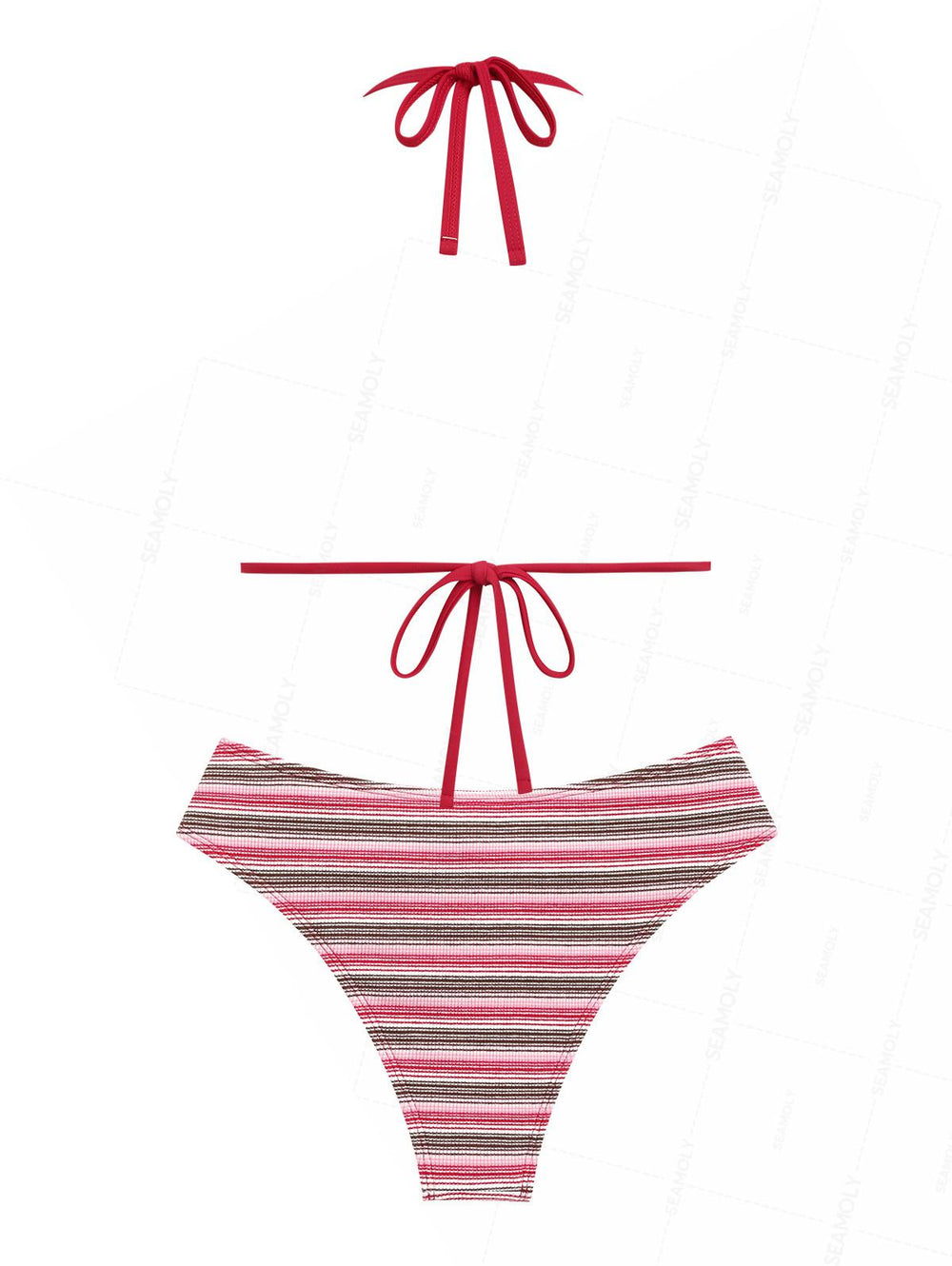 Seamolly Striped Ribbed Halter Cutout Tied Side Boyshorts Tankini Set