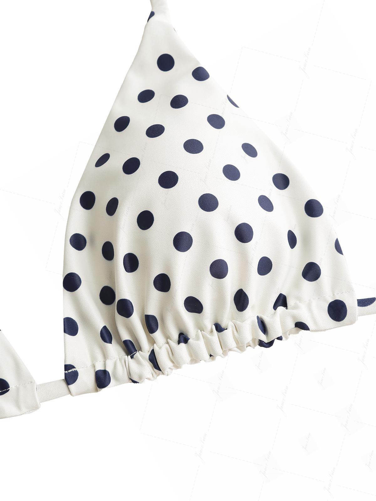 Crystal Cream Vintage Polka Dot Reversible Halter Triangle Bikini Set