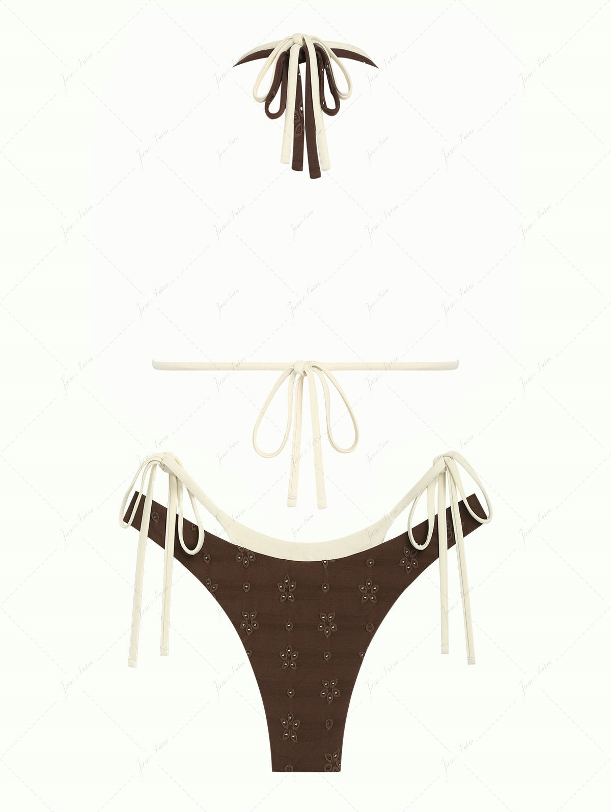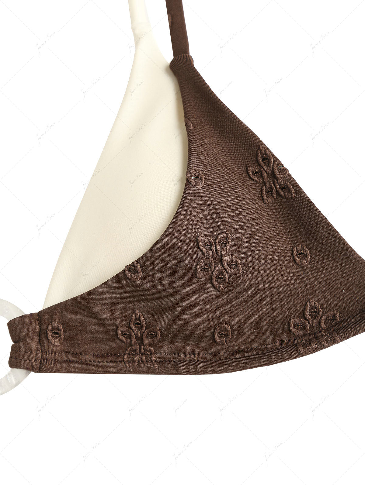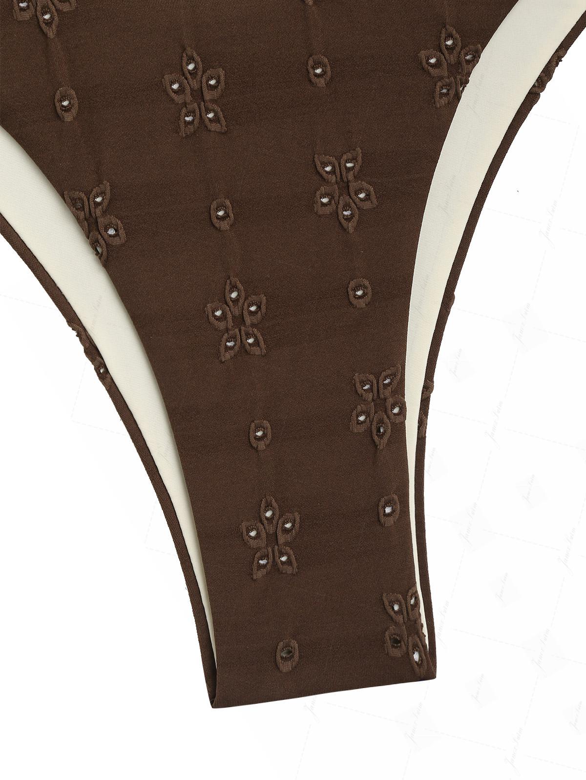 Deep Coffee Recycled Fabric Eyelet Jacquard O Ring Double Layer Bikini Set