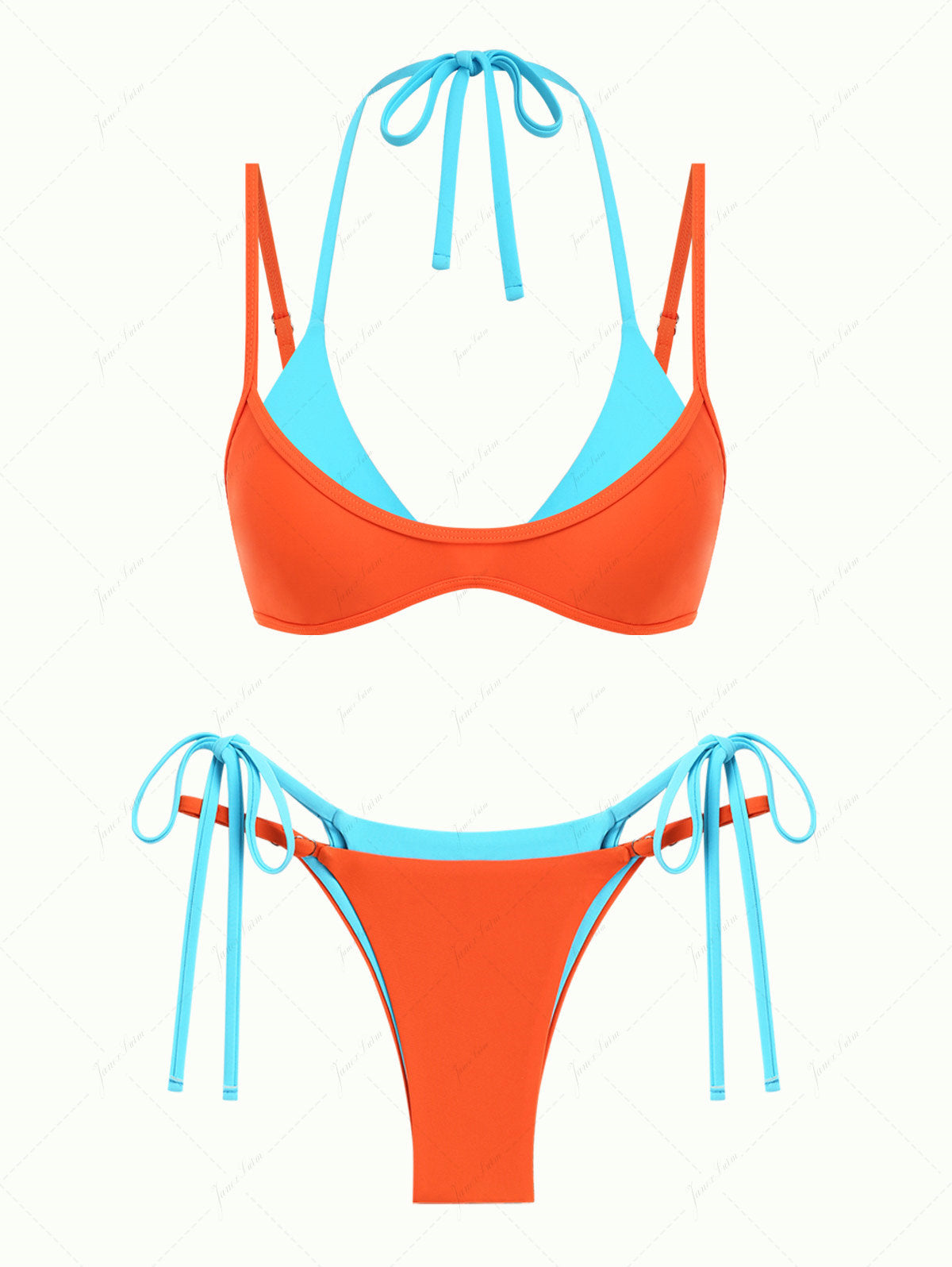 Orange Colorblock Two Tone String Double Layer Bikini Set