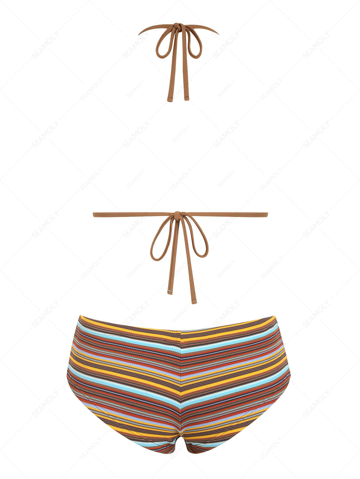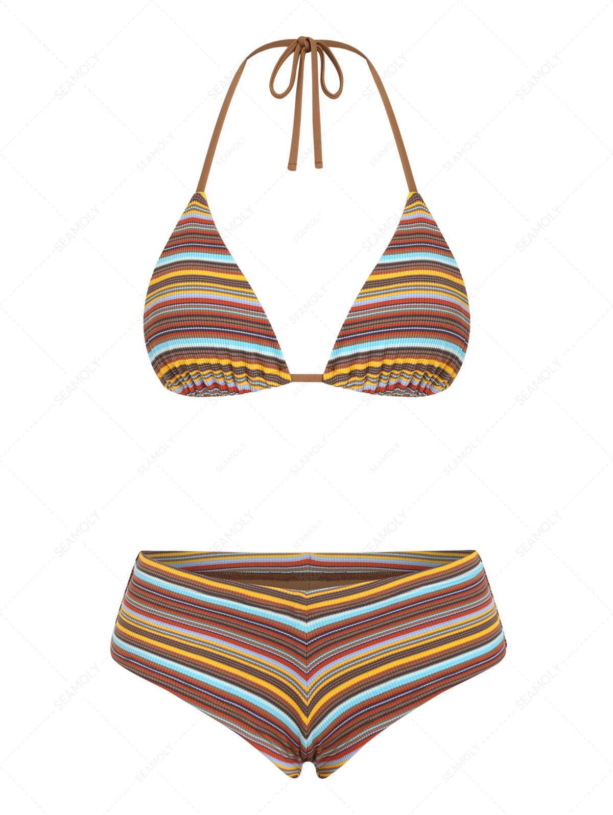 Seamolly Striped Halter Triangle Cheeky Boyshorts Bikini Set