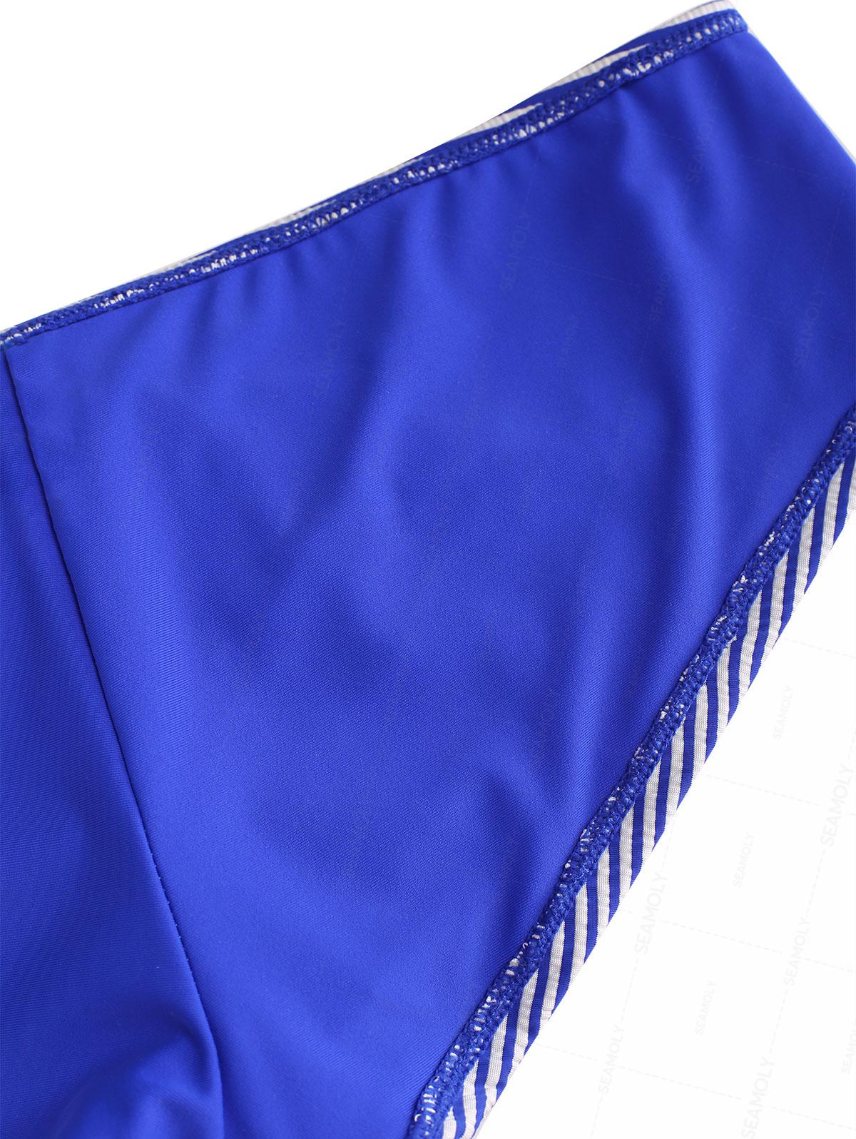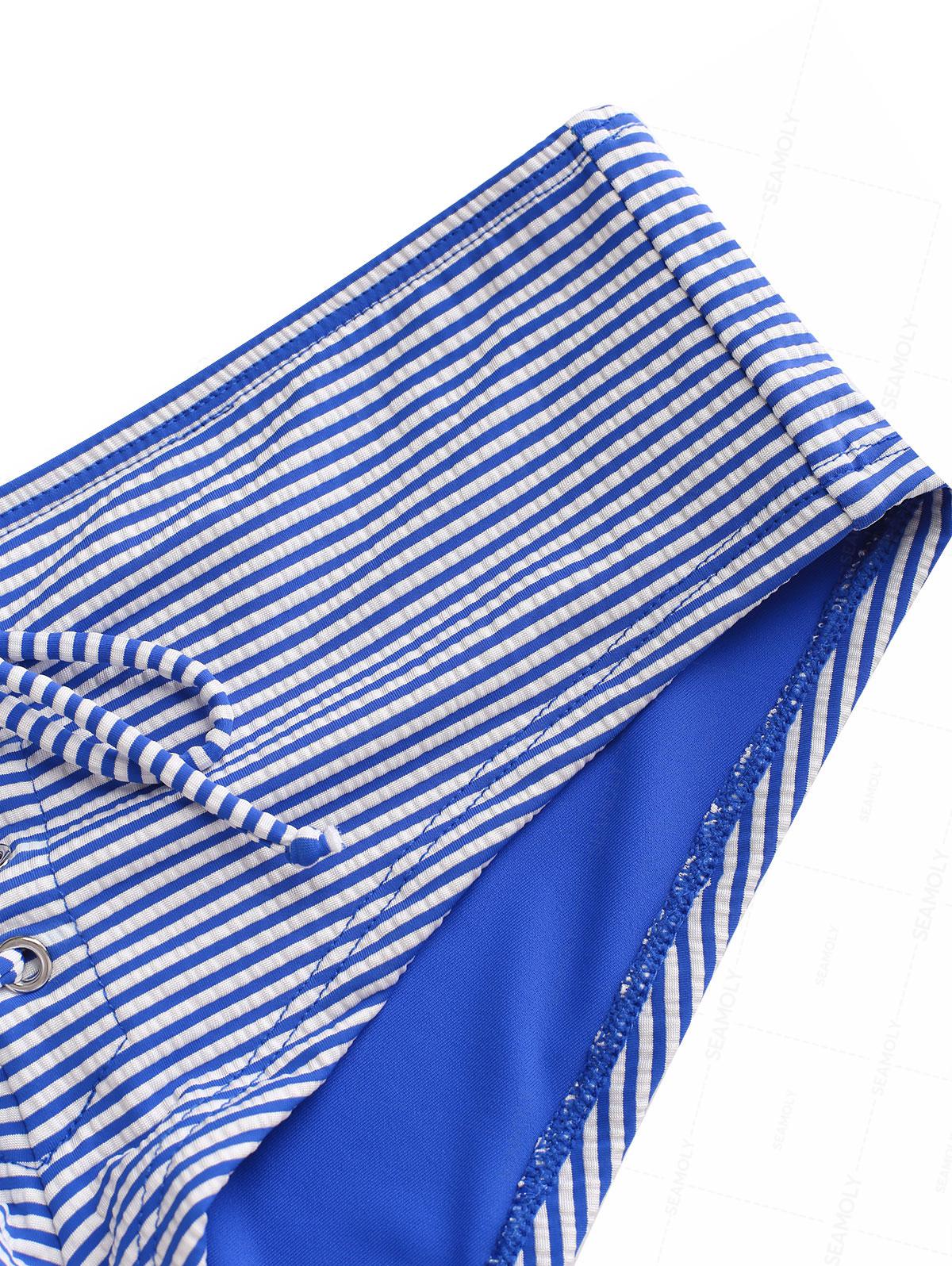 Seamolly Indigo Color Striped Grommet Lace Up Bikini Bottom Cheeky Swim Boyshorts