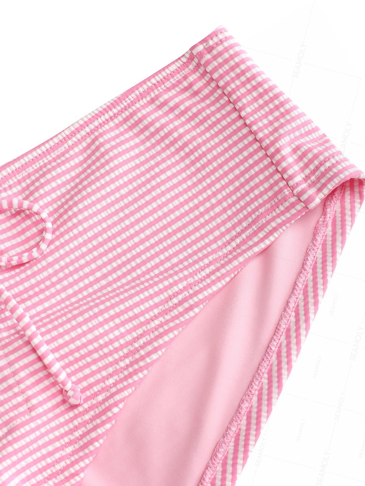 Seamolly Striped Grommet Lace Up Bikini Bottom Cheeky Swim Boyshorts