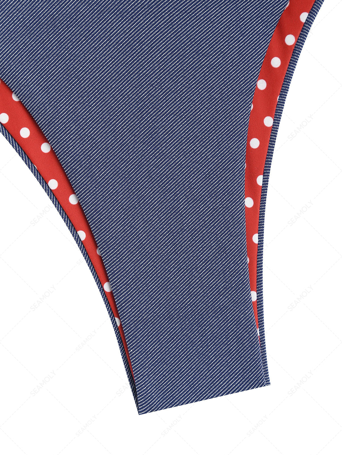 Seamolly Denim Polka Dot Print O Ring Double Layer Bikini Set