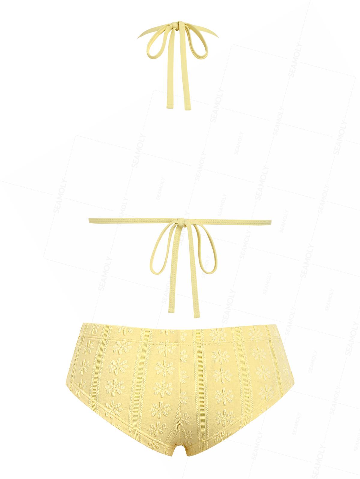 Seamolly Y2K Jacquard Push Up Top & Cheeky Boyshorts Bikini Set