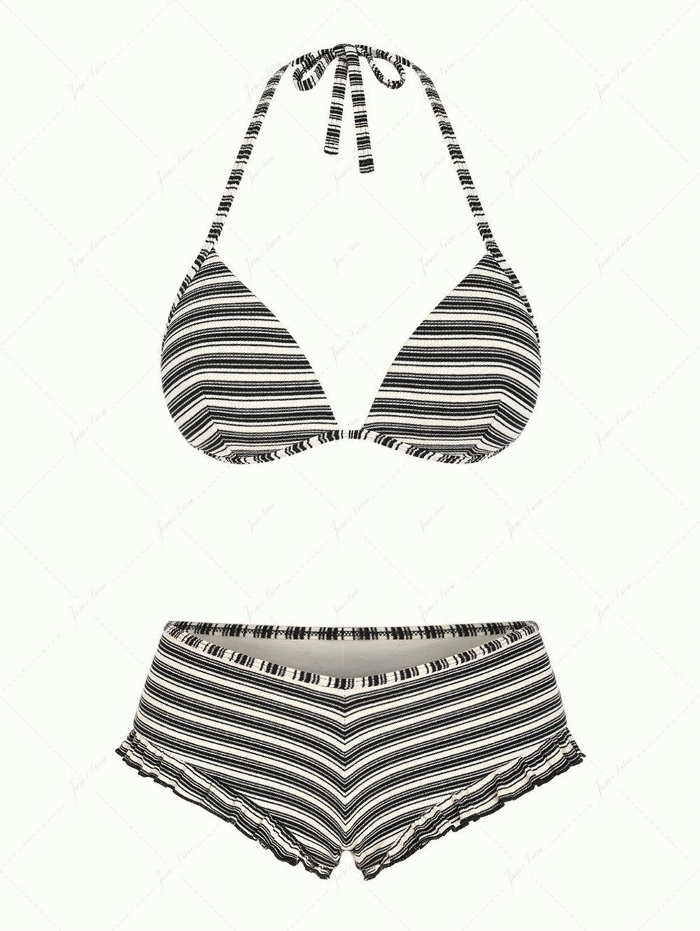 Seamolly Striped Halter Triangle Cheeky Boyshorts Bikini Set
