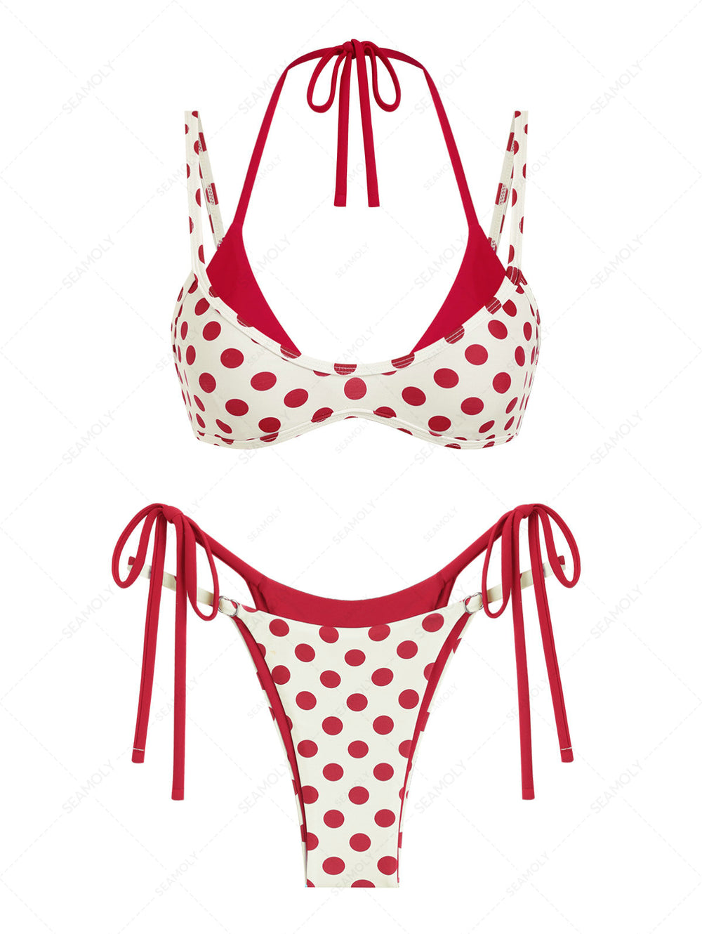 Seamolly Contrast Color Polka Dot Print Tie Side Double Layer Bikini Set