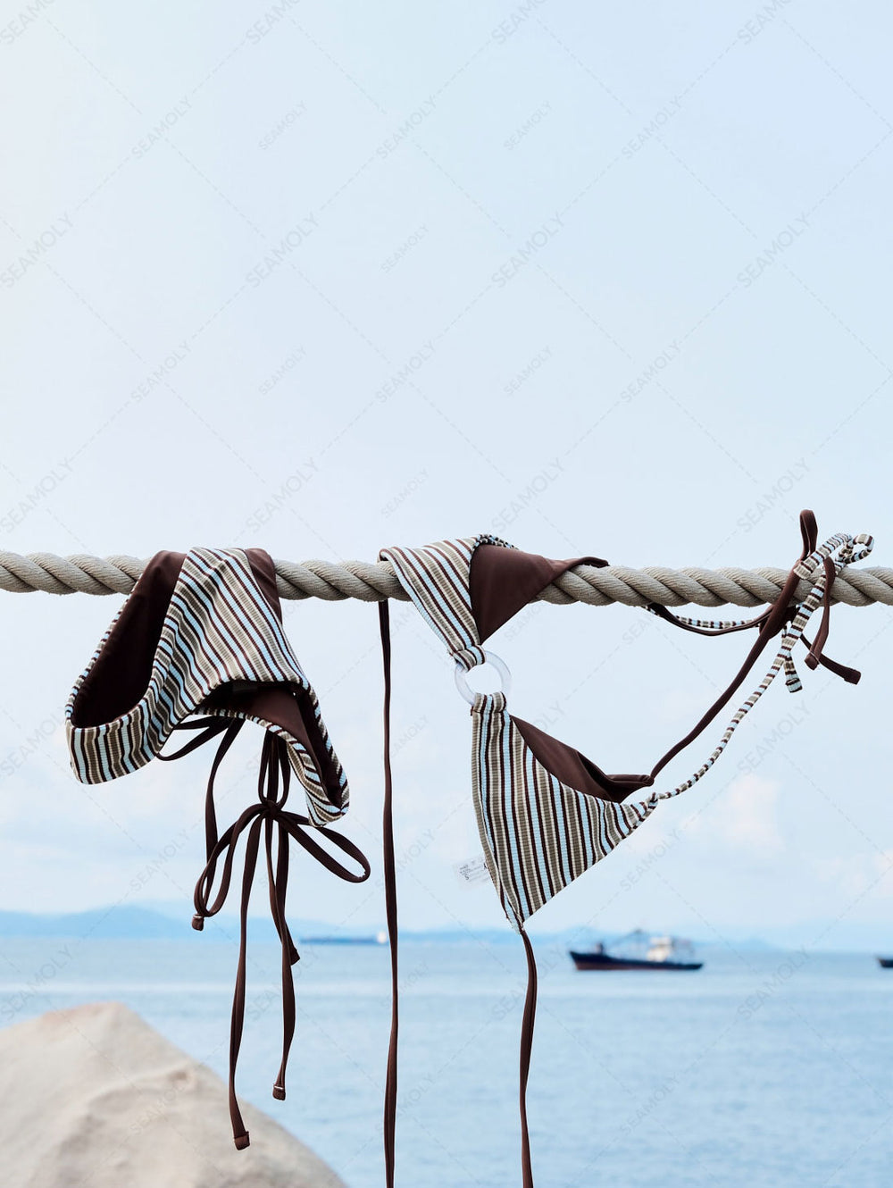 Seamolly Contrast Color Striped String Double Layer Bikini Set
