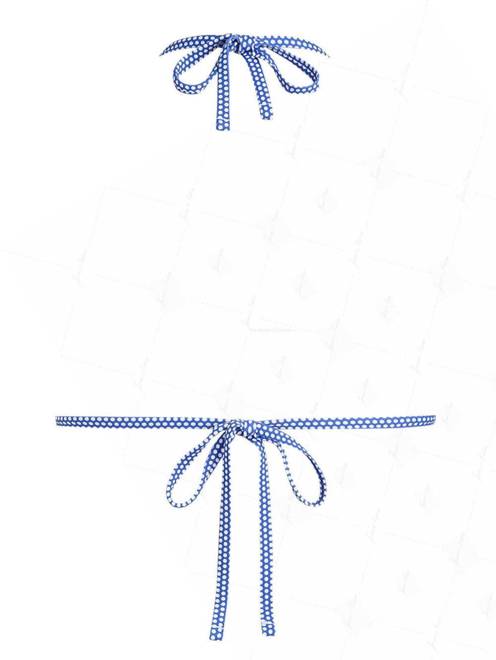 Blue Polka Dot Print Ruched Halter Tied Triangle Bikini Top
