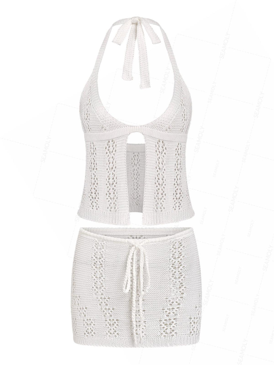 Crochet Knit Halter Crop Top And Mini Skirt Beach Cover Up Set