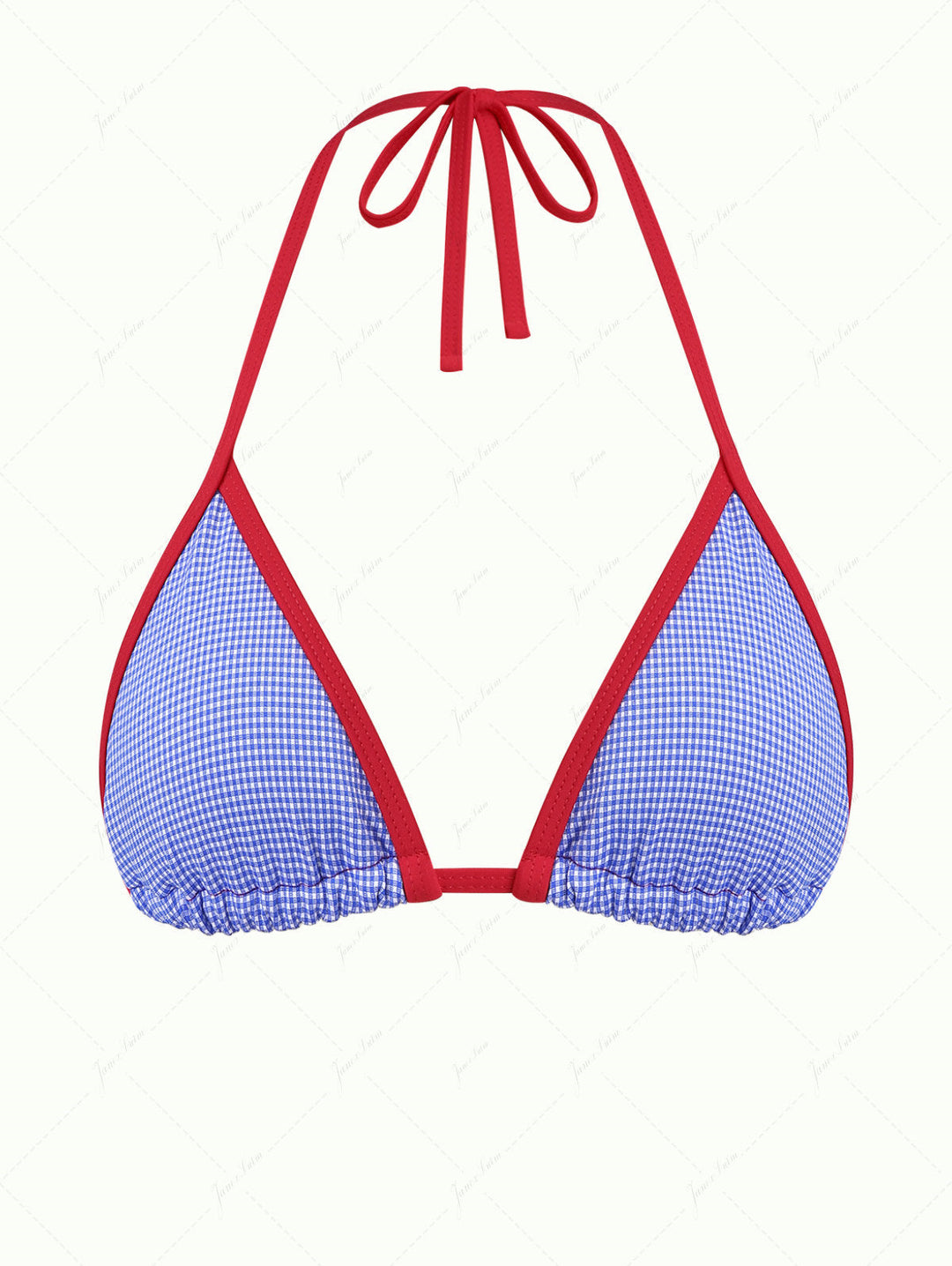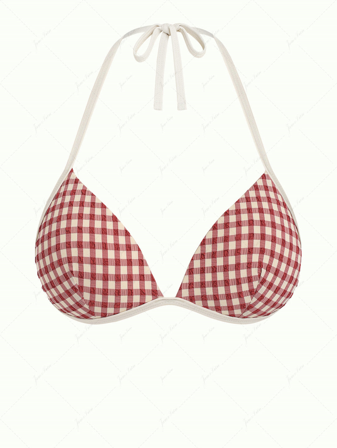 Pomegranate Red Gingham Molded Cups Support Halter Triangle Bikini Top
