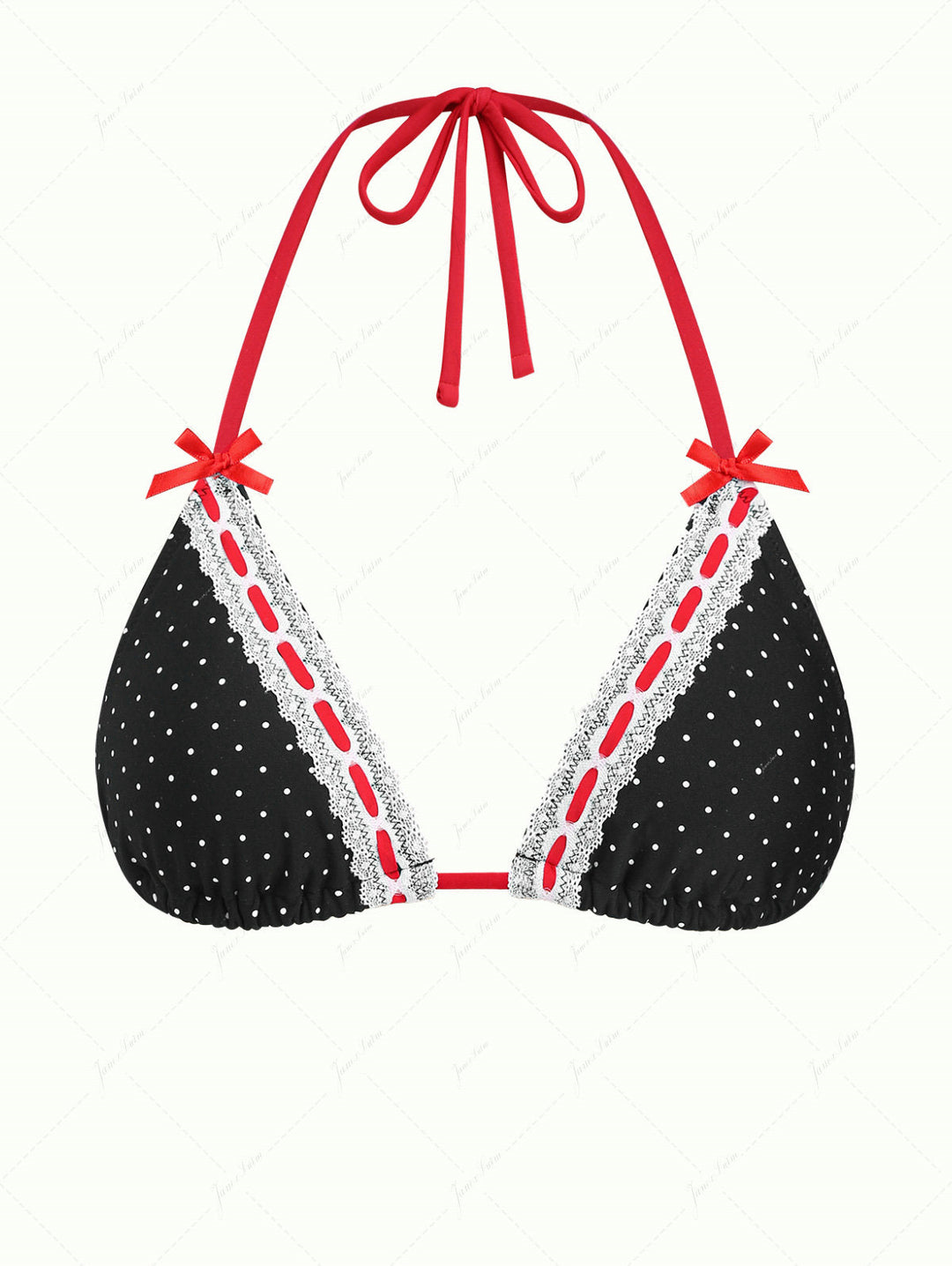 Vintage Red Polka Dot Lace Bowknot Halter Triangle Bikini Top