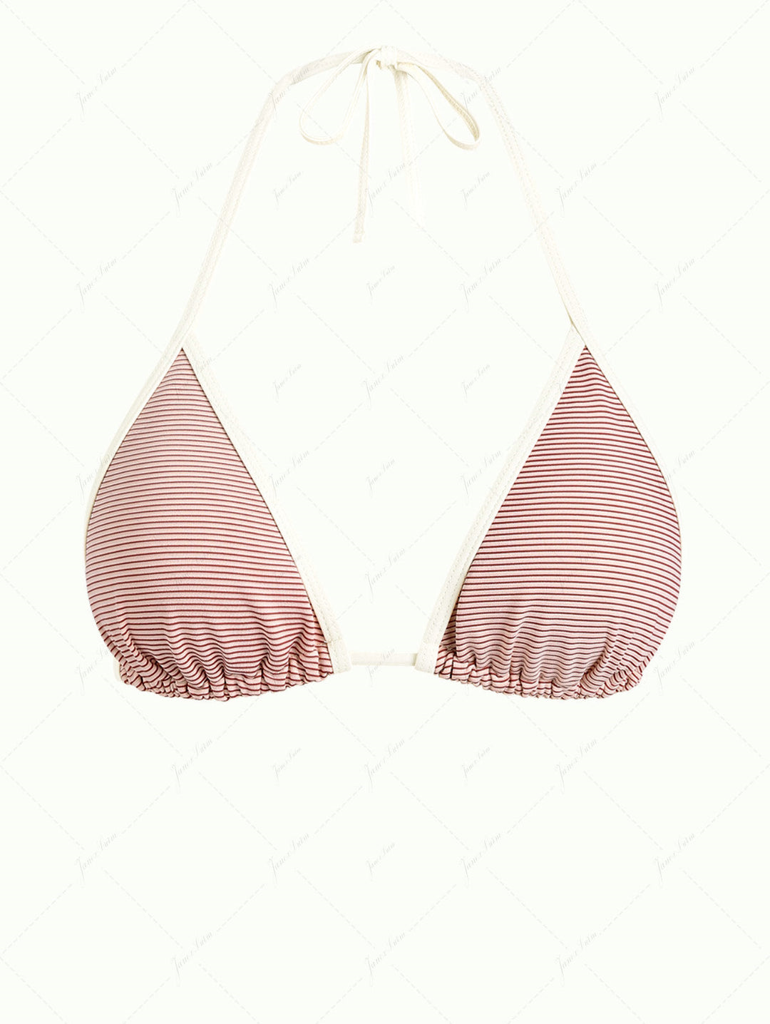 Cherry Red Striped Contrast Binding Halter Triangle Bikini Top