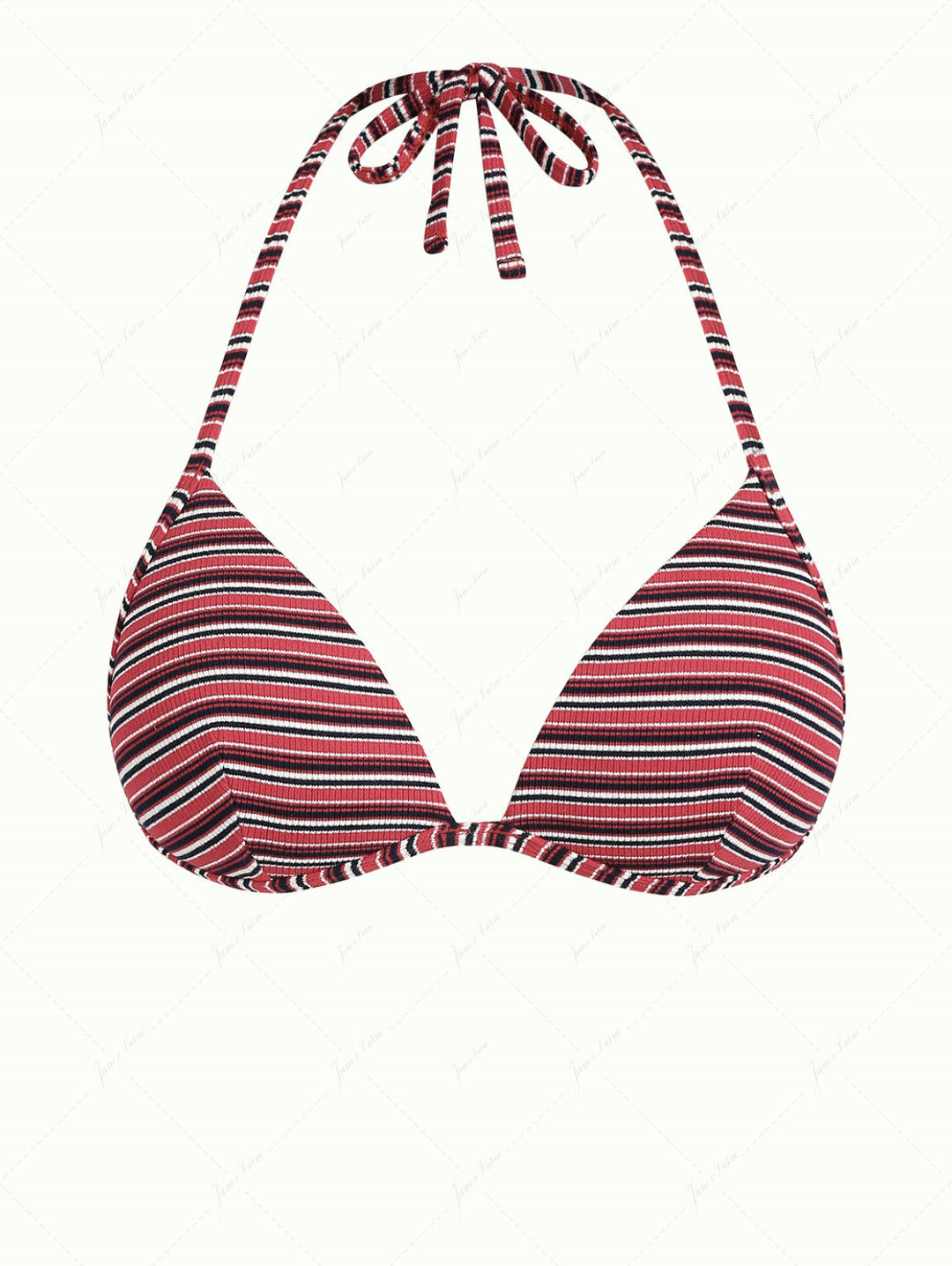 Red Knit Striped Ribbed Halter Triangle Bikini Top
