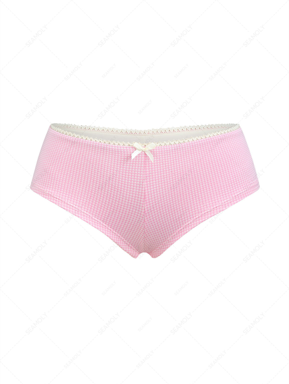 Light Pink Plaid Bowknot Low Rise Bikini Bottom Cheeky Swim Boyshorts