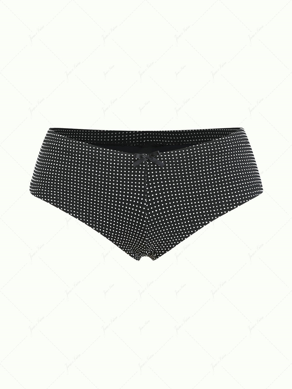Black Pin Dot Jacquard Fabric Low Rise Bikini Bottom Cheeky Swim Boyshorts