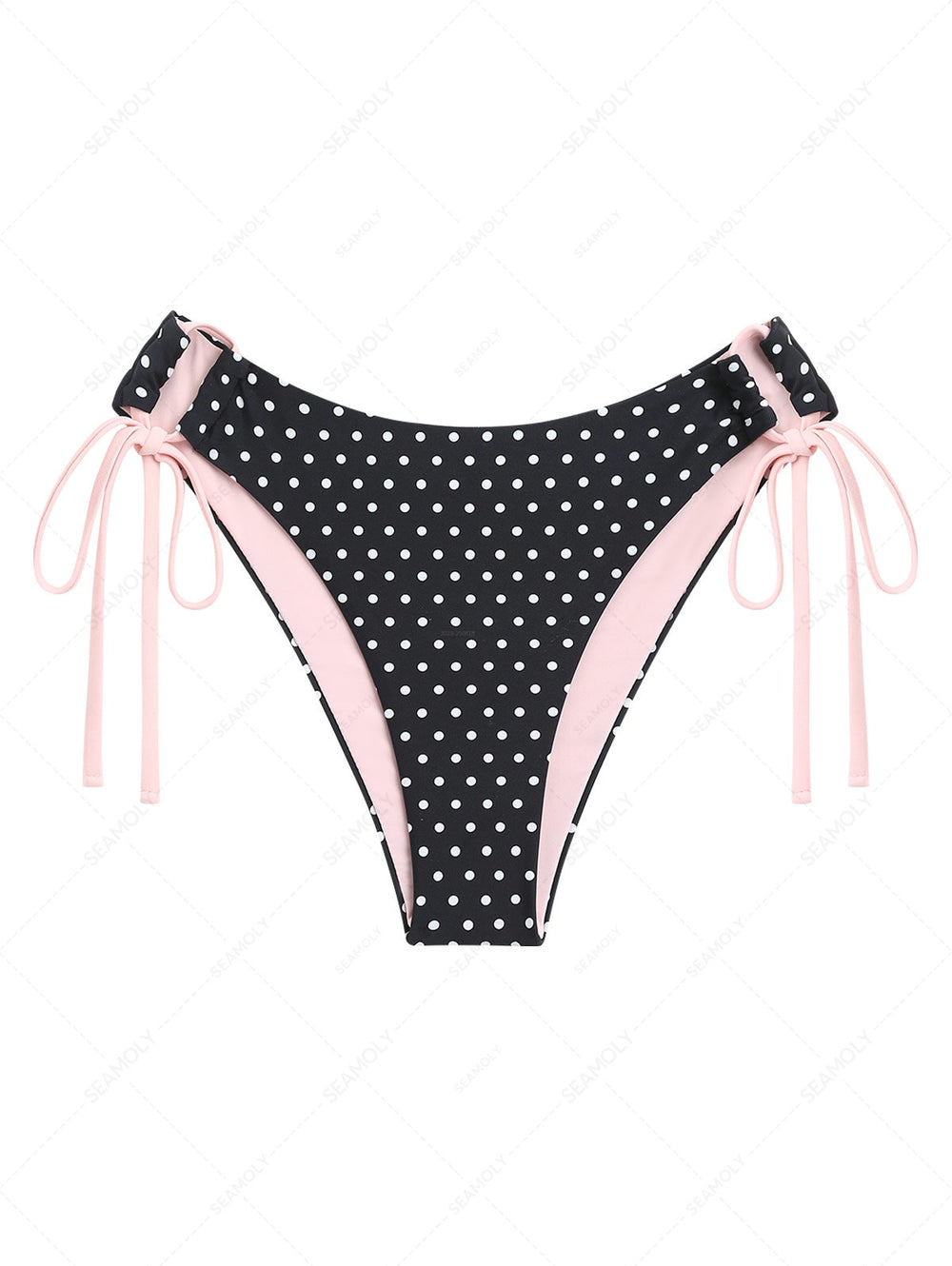 Black Polka Dot Print Tied Side Full Coverage Bikini Bottom