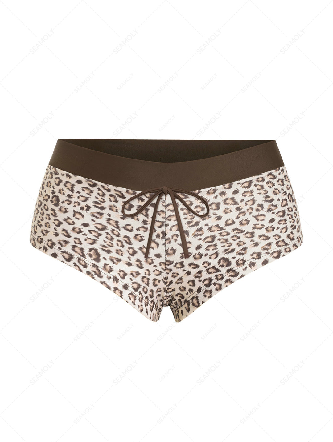 Seamolly Leopard Print Bowknot Low Rise Bikini Bottom Cheeky Swim Boyshorts