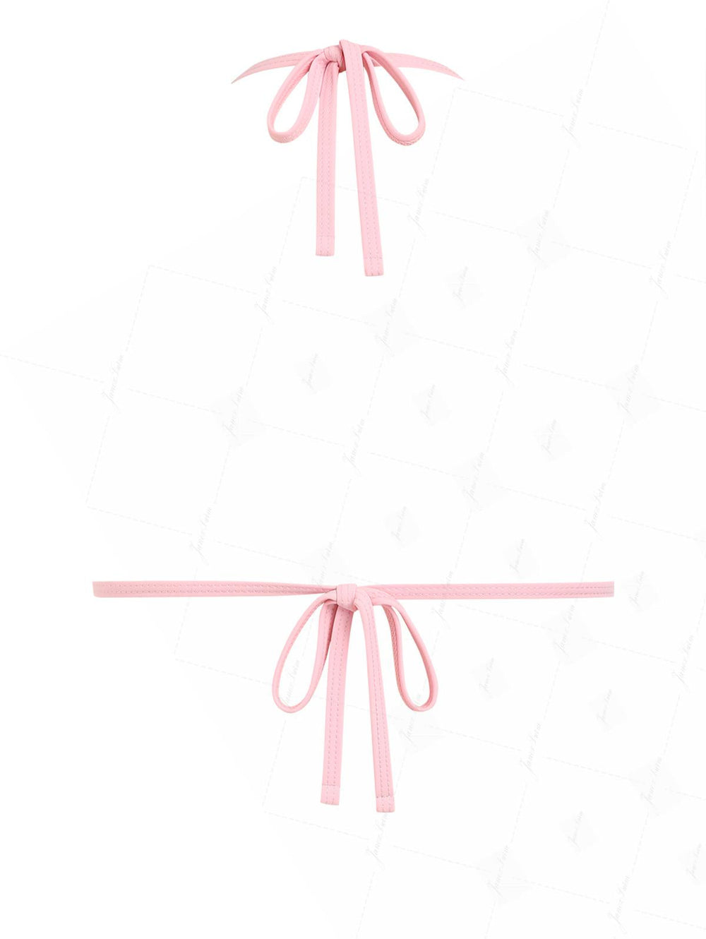 Seamolly Leopard Contrast Color Bowknot Halter Triangle Tie Side Bikini Set
