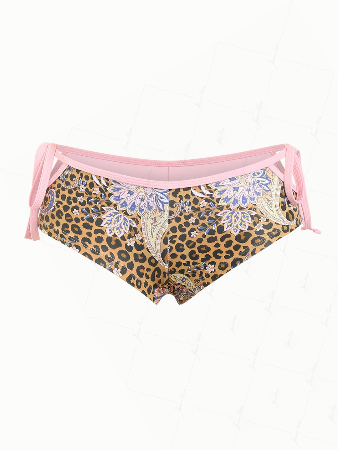 Vintage Leopard Bowknot Low Rise Bikini Bottom Cheeky Swim Boyshorts
