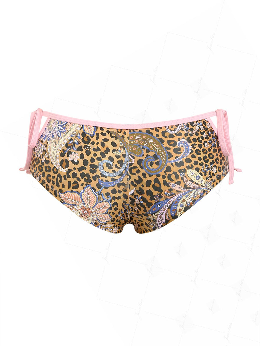 Brown Leopard Paisley Print Cutout Tie Side Bikini Bottom Cheeky Swim Boyshorts