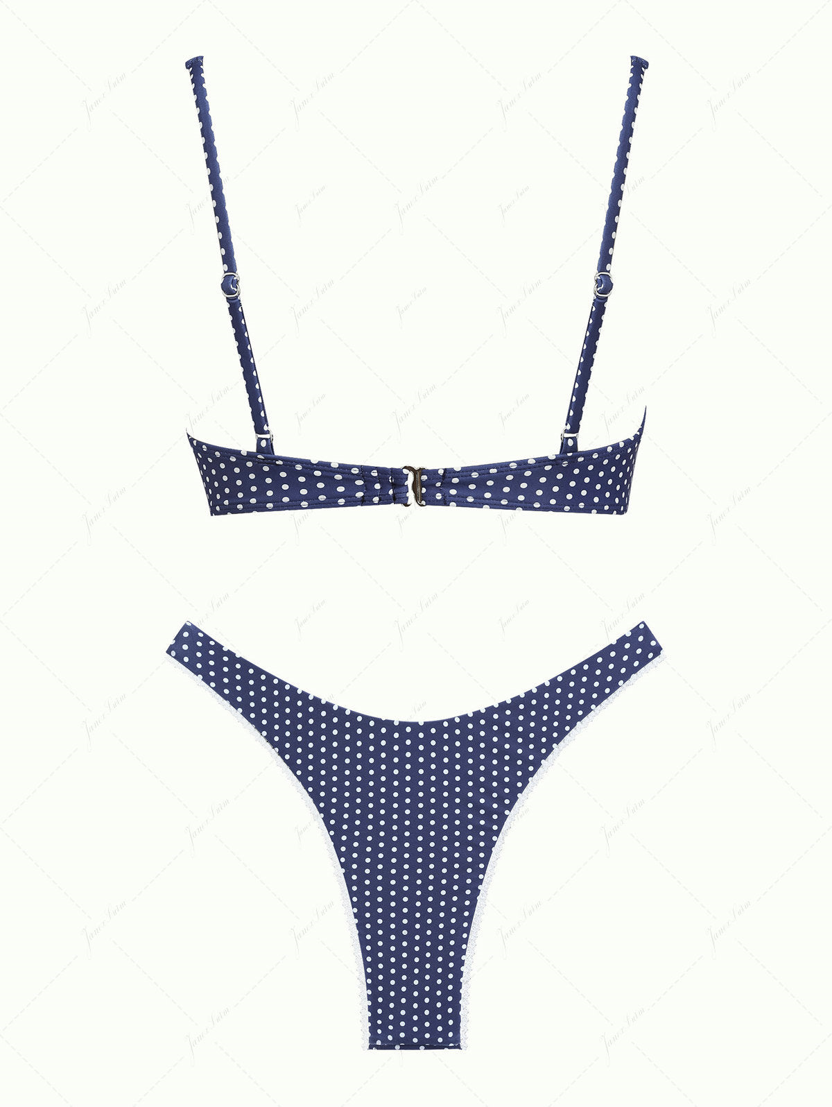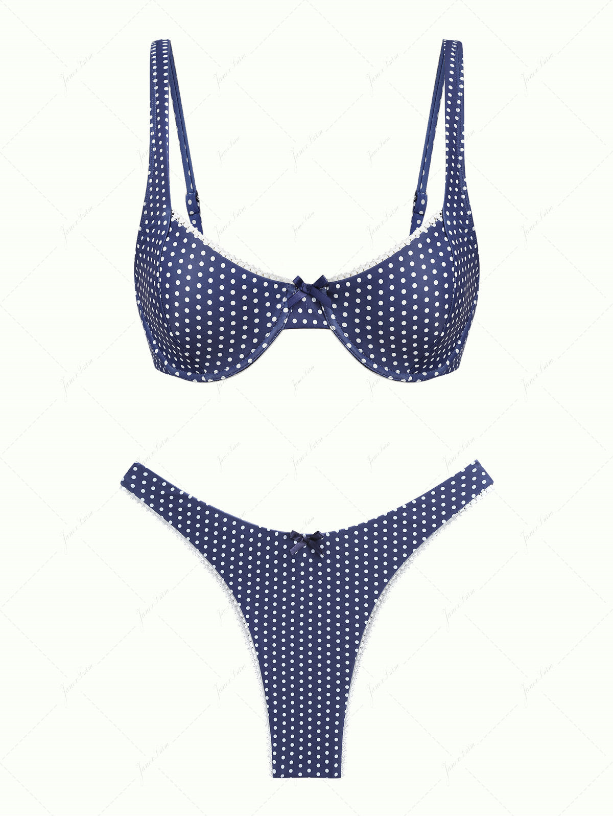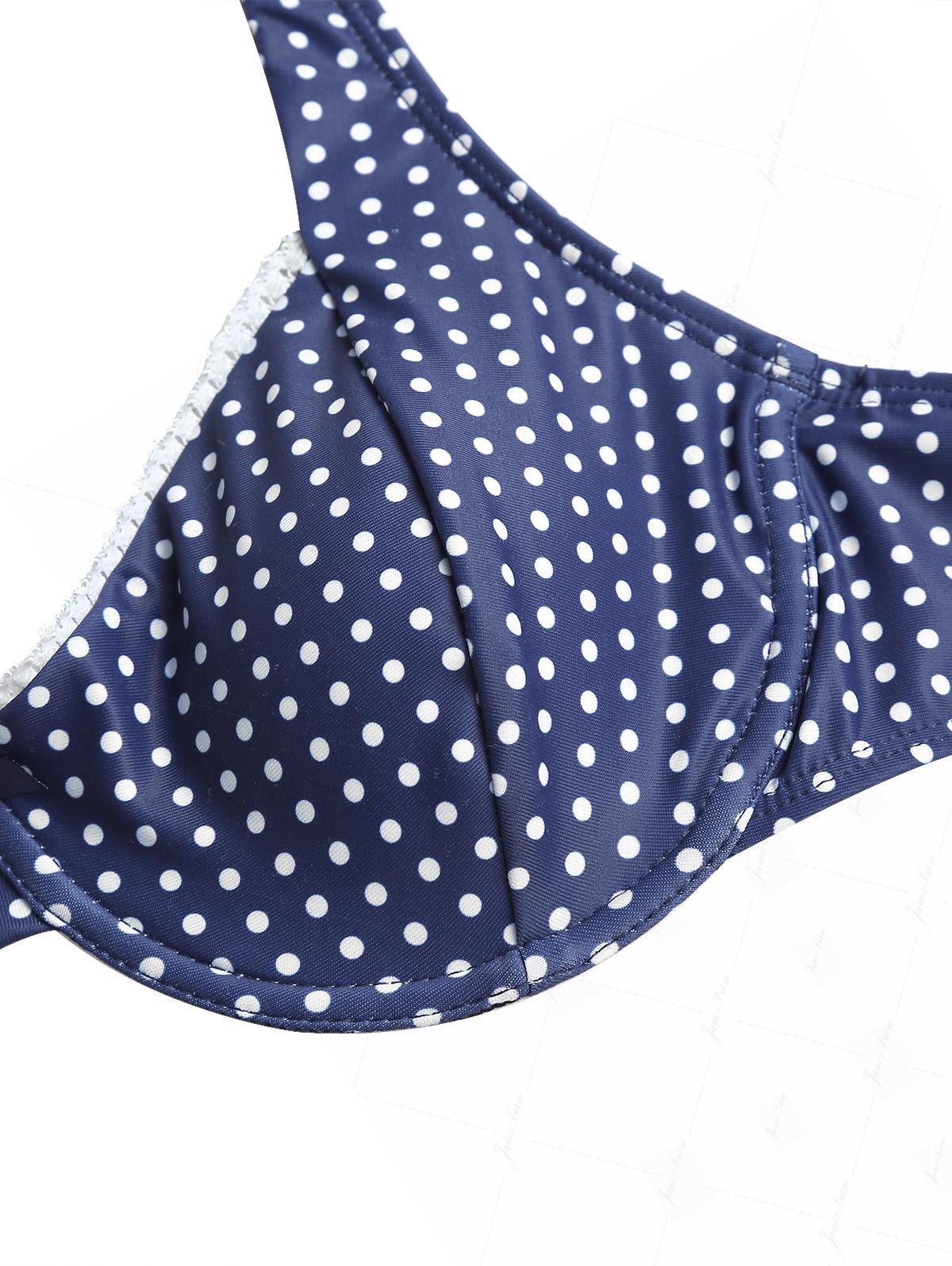 Deep Blue Polka Dot Lace Bowknot Underwire Bikini Set