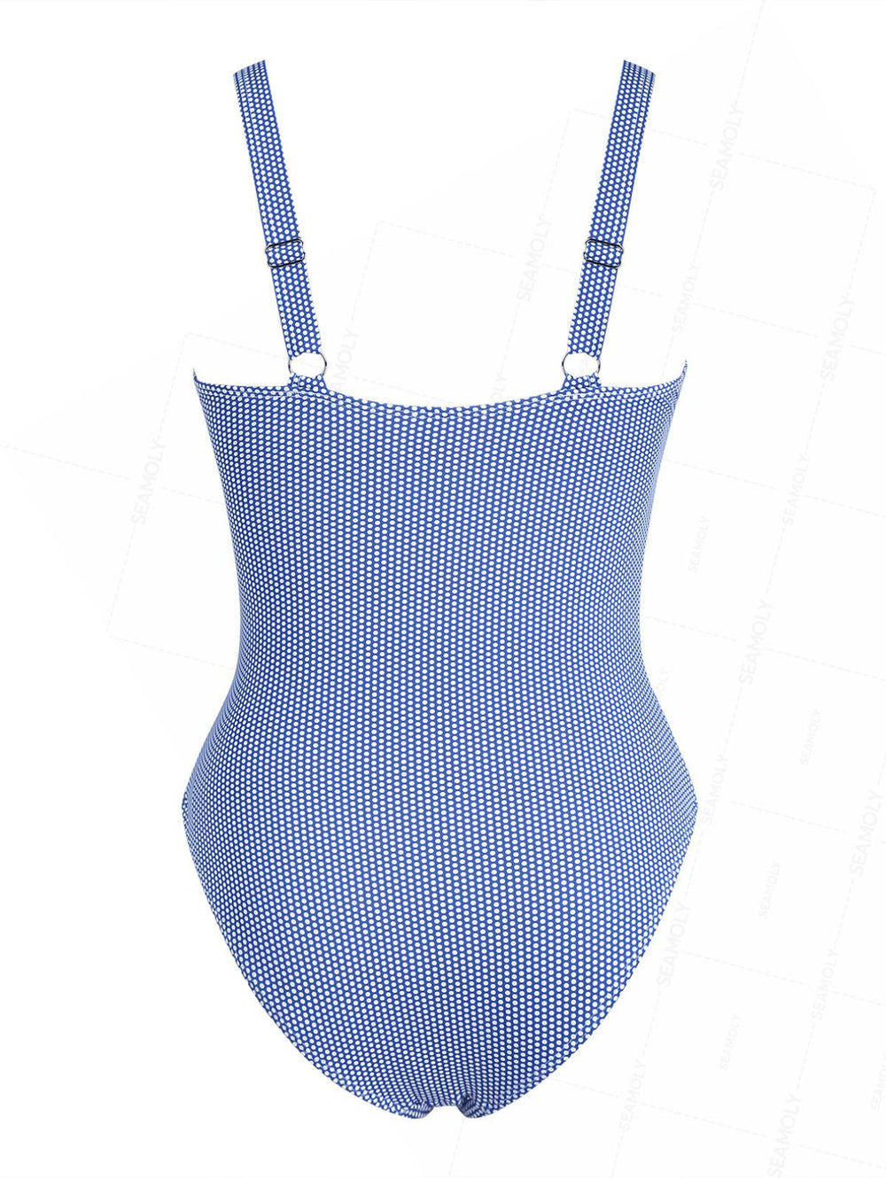 Seamolly 1950s Retro Vintage Polka Dots Printed Drawstring Tied Front One-piece Swimsuit