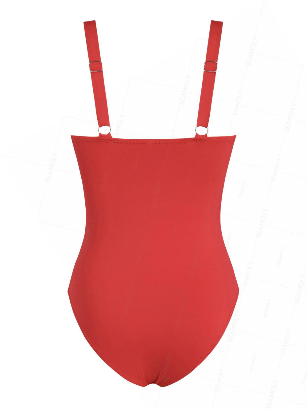 Seamolly 1950s Pin-Up Retro Vintage Polka Dot Surplice Ruched Cut Out V Neck One-piece Swimsuit