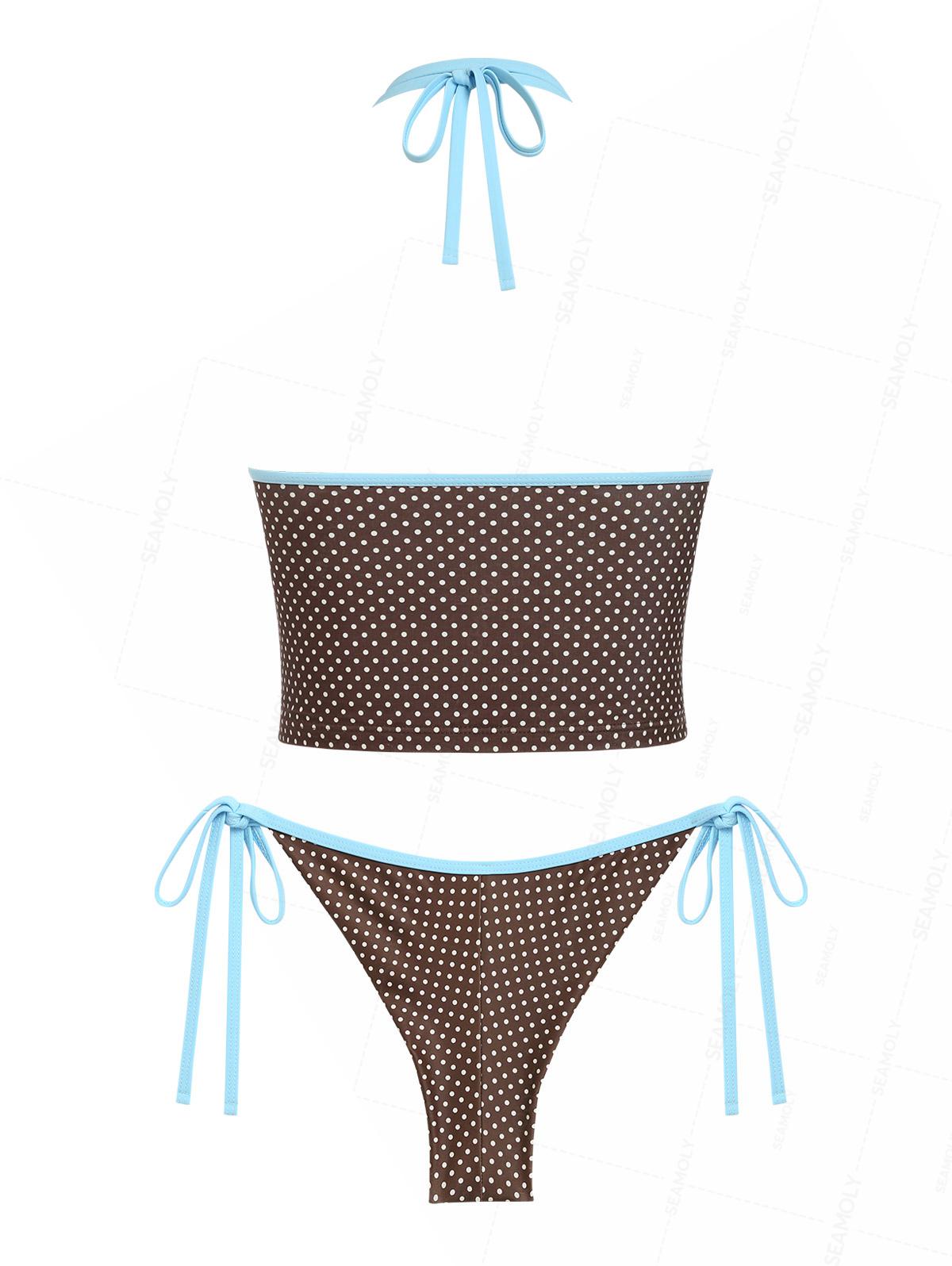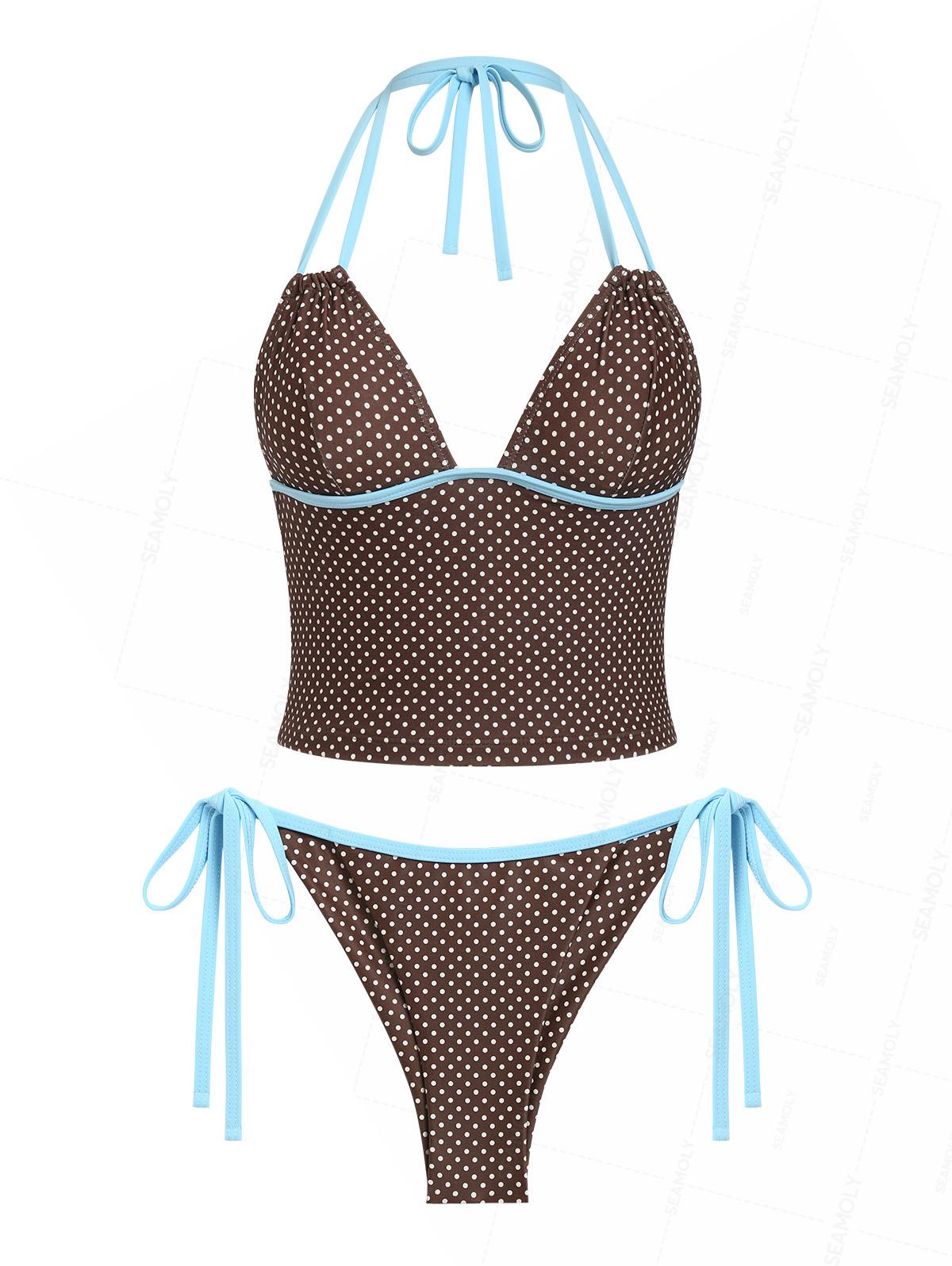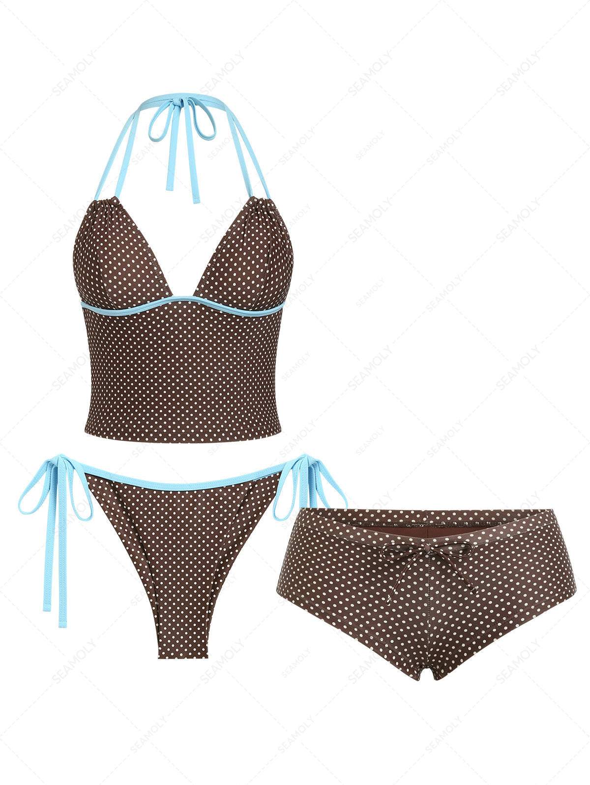 Seamolly 3 Piece Polka Dot Print Halter Brazilian Cheeky Boyshort Tankini Set
