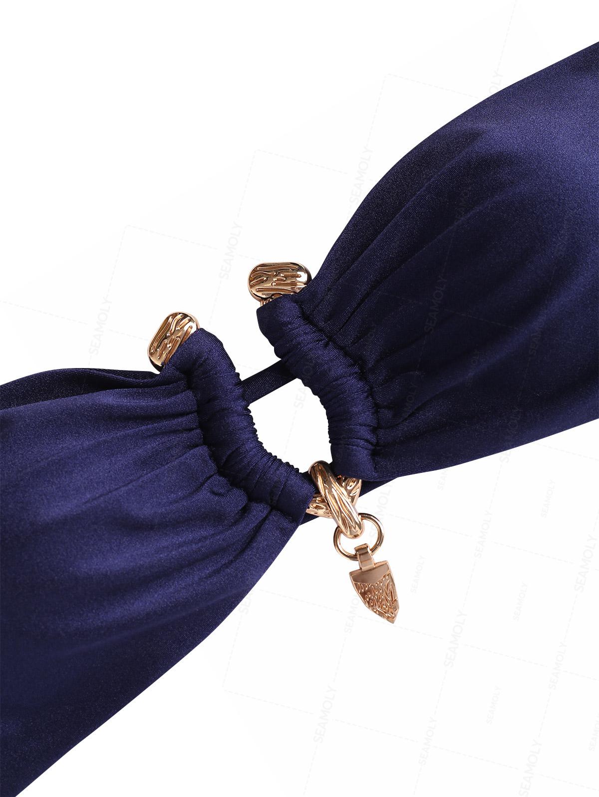Seamolly Vintage Ruched U-ring Metal Lace Up Bandeau Top & Brazilian Bottom Bikini Set
