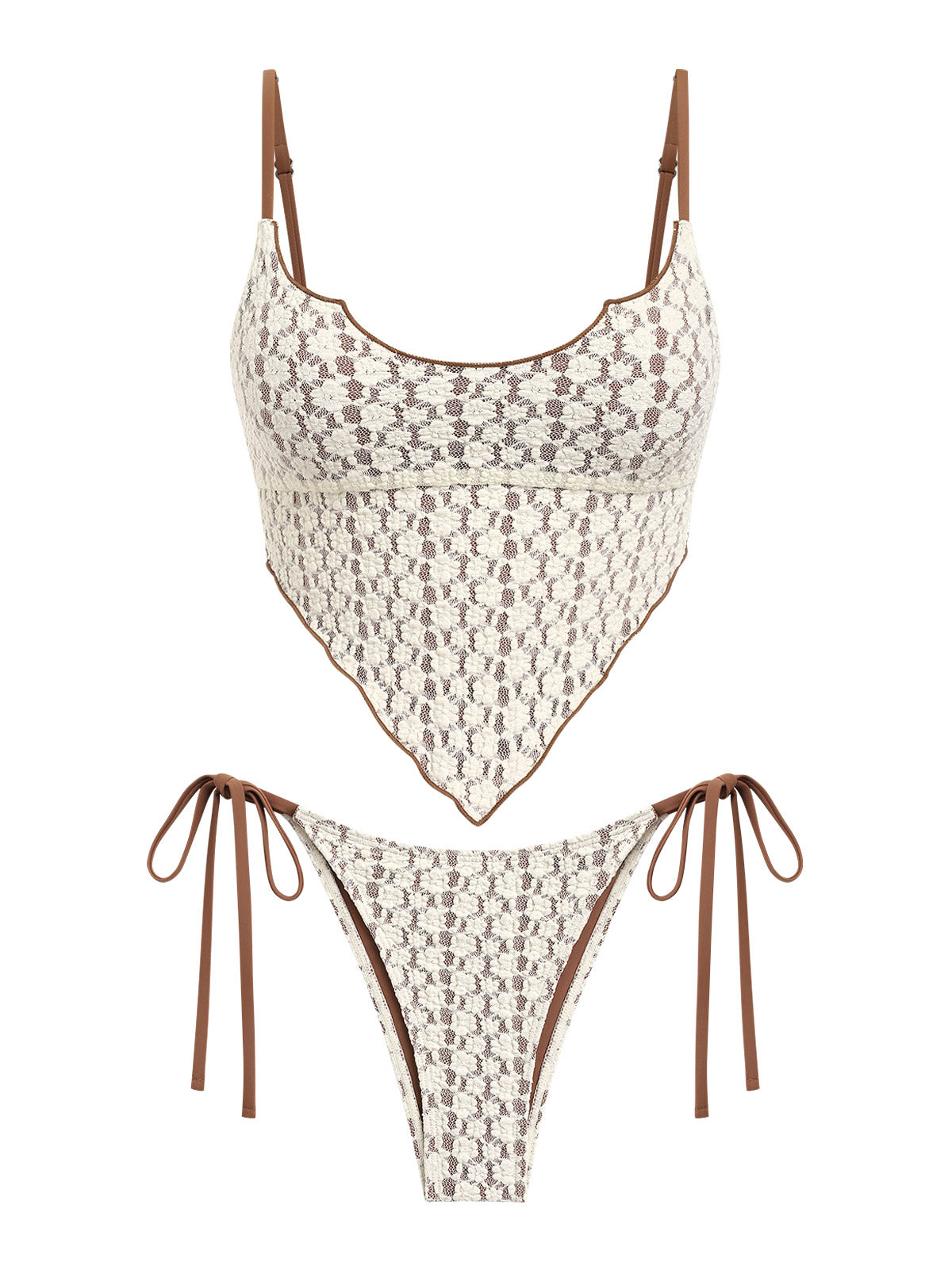Seamolly Vintage Lace Jacquard Hanky Hem Tie Side Tankini Set