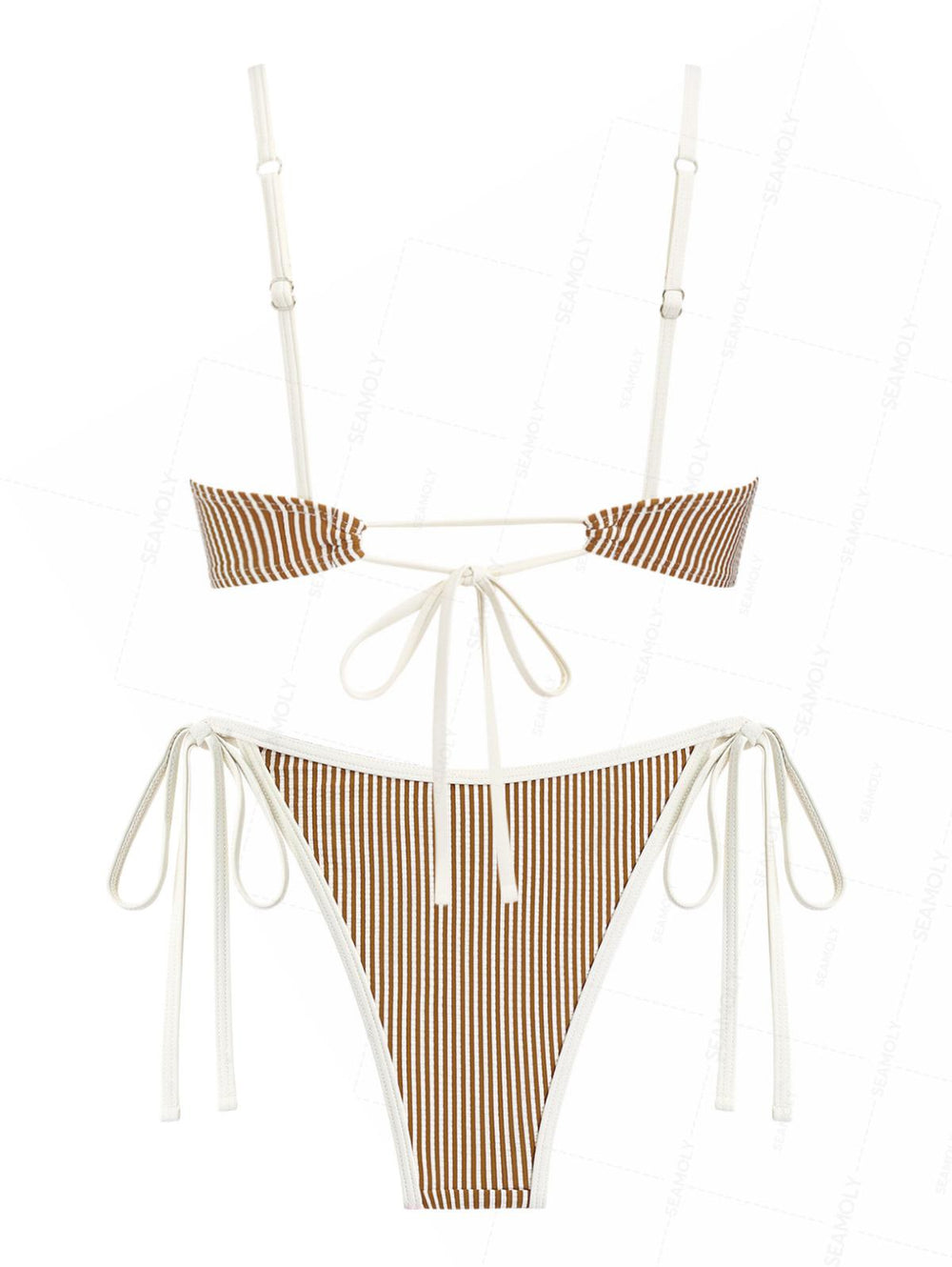 Seamolly Striped Spliced Ruched Ruffles Bowknot Tie Side Bikini Set