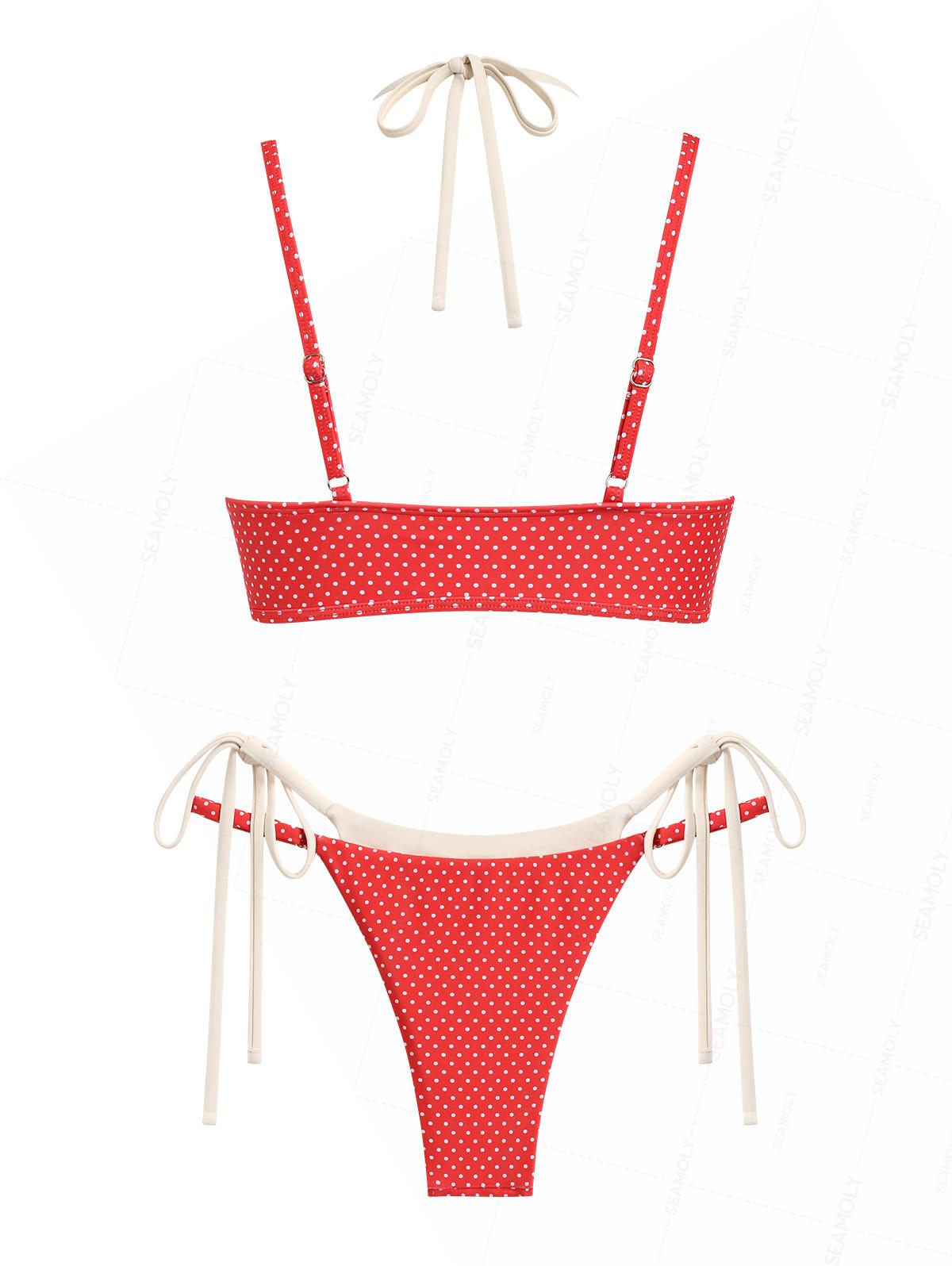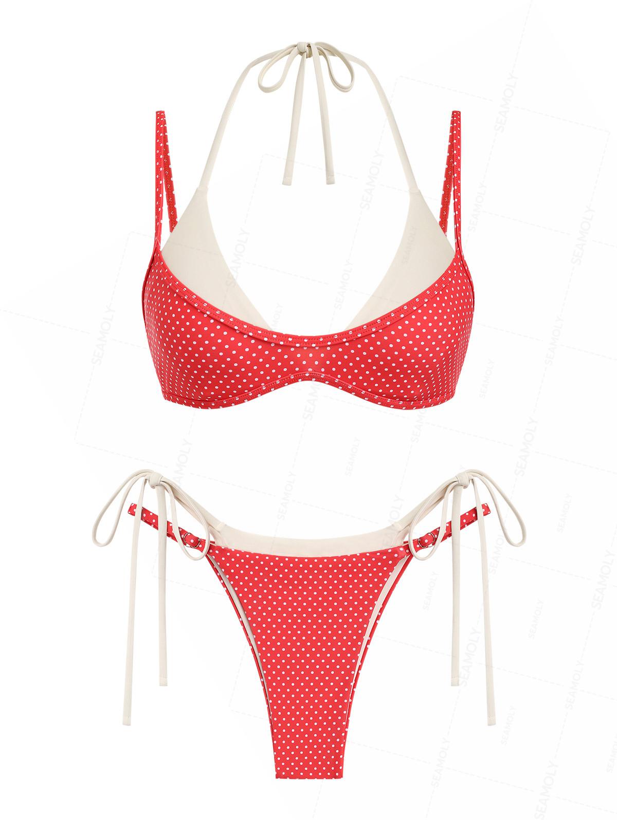 Seamolly Polka Dot Print Double Layer 2 In 1 Tie Side Bikini Set