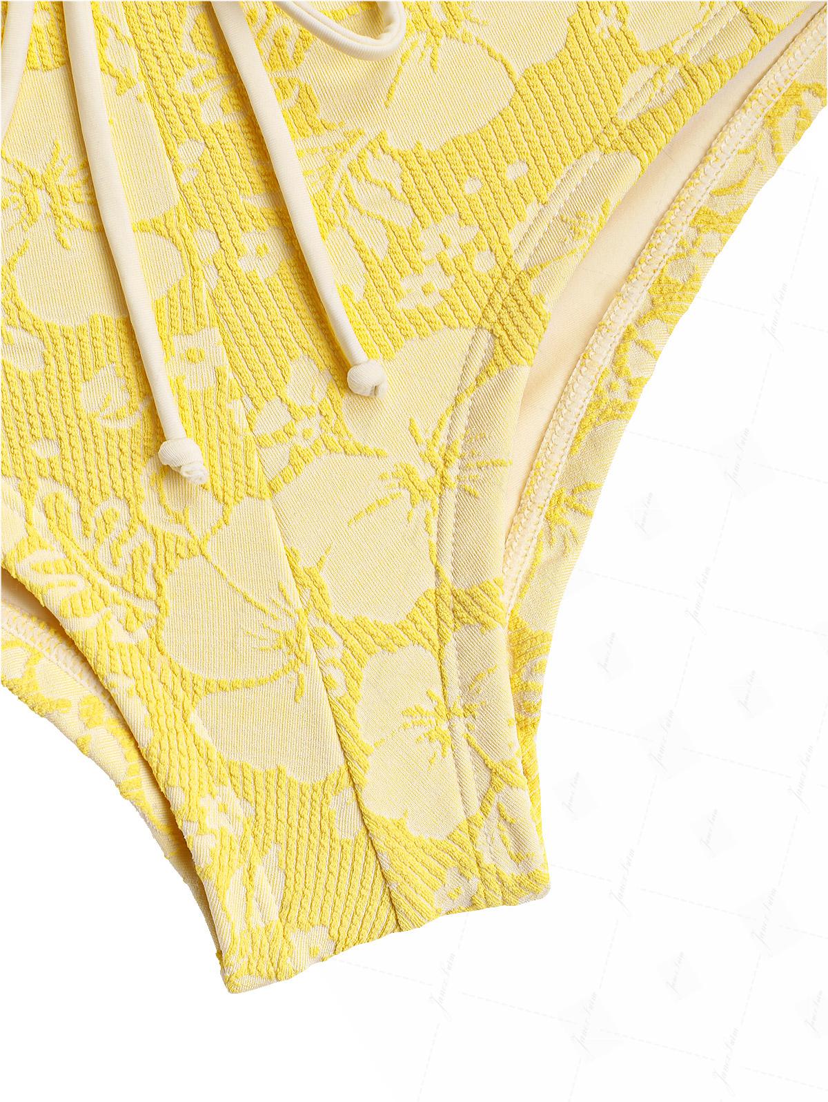Yellow Recycled Fabric Jacquard Grommet Lace Up Bikini Bottom Cheeky Swim Boyshorts