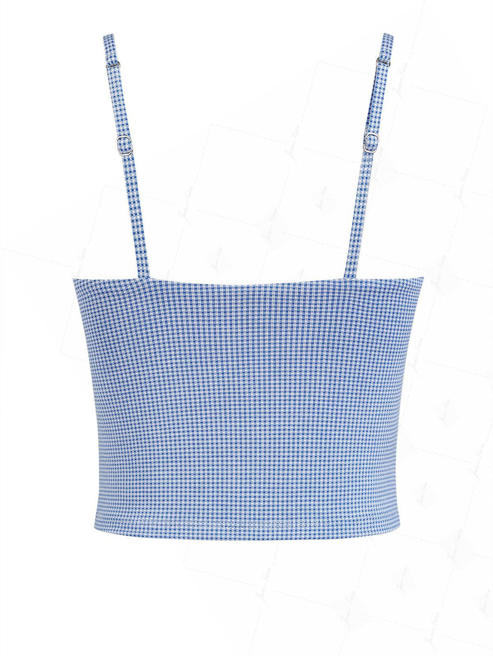 Sky Blue Plaid Ruched Lace Bowknot Cami Tankini Top