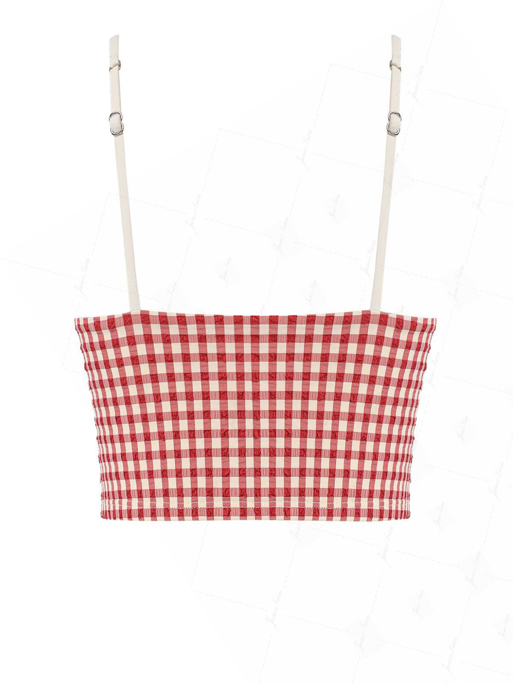 Pomegranate Red Gingham Lace Trim Slim Fit Cami Tankini Top