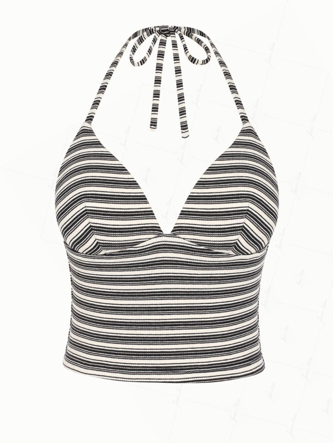 Light Pink Knitted Plaid Lace Plunging Neck Halter Tankini Top