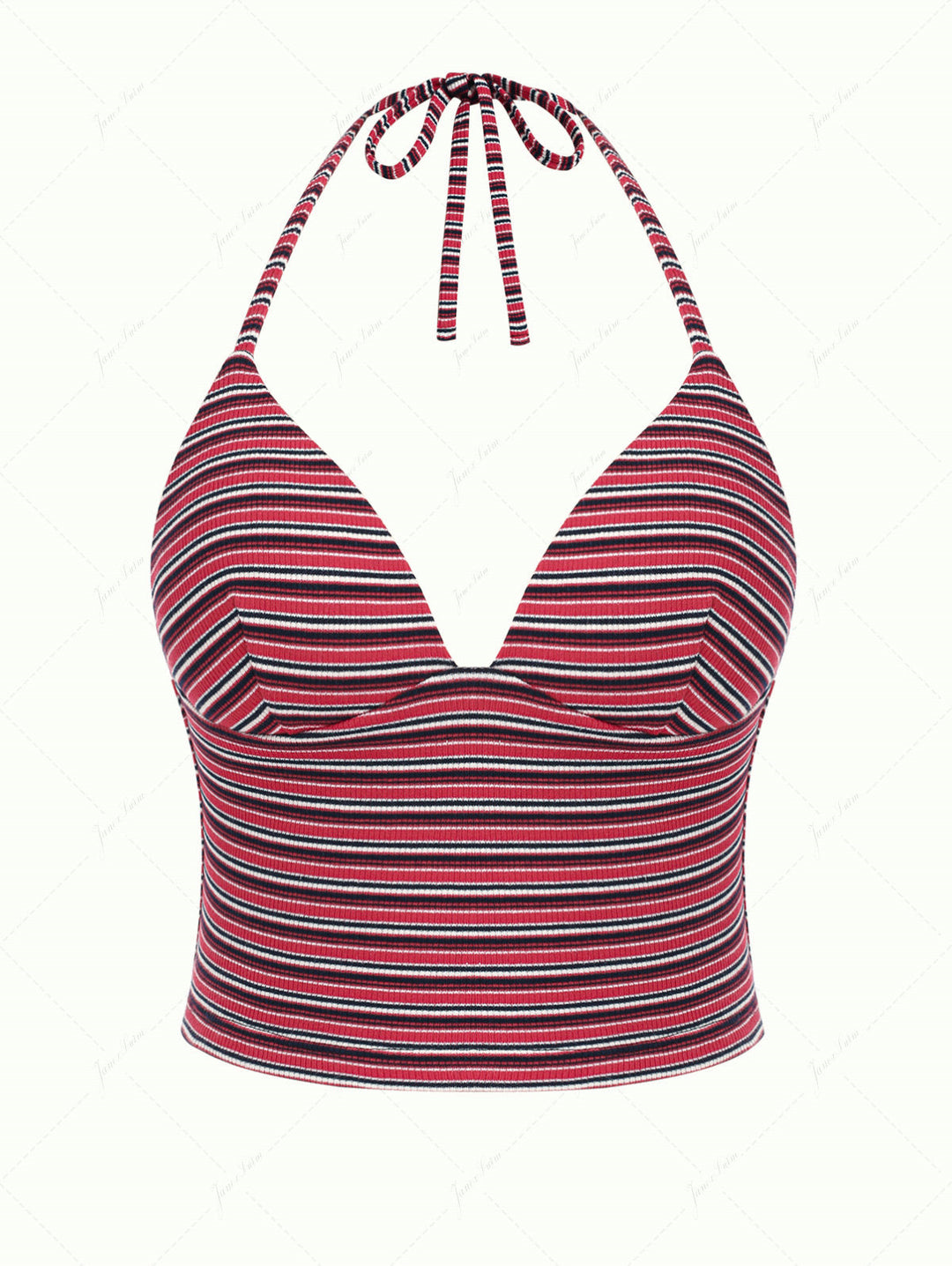 Red Knit Striped Ribbed Molded Cups Support Tankini Top