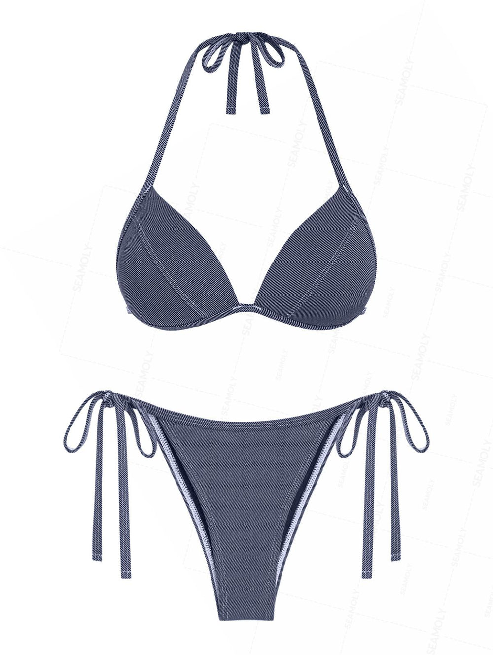 Seamolly Vintage Denim Support Halter Triangle String Bikini Set