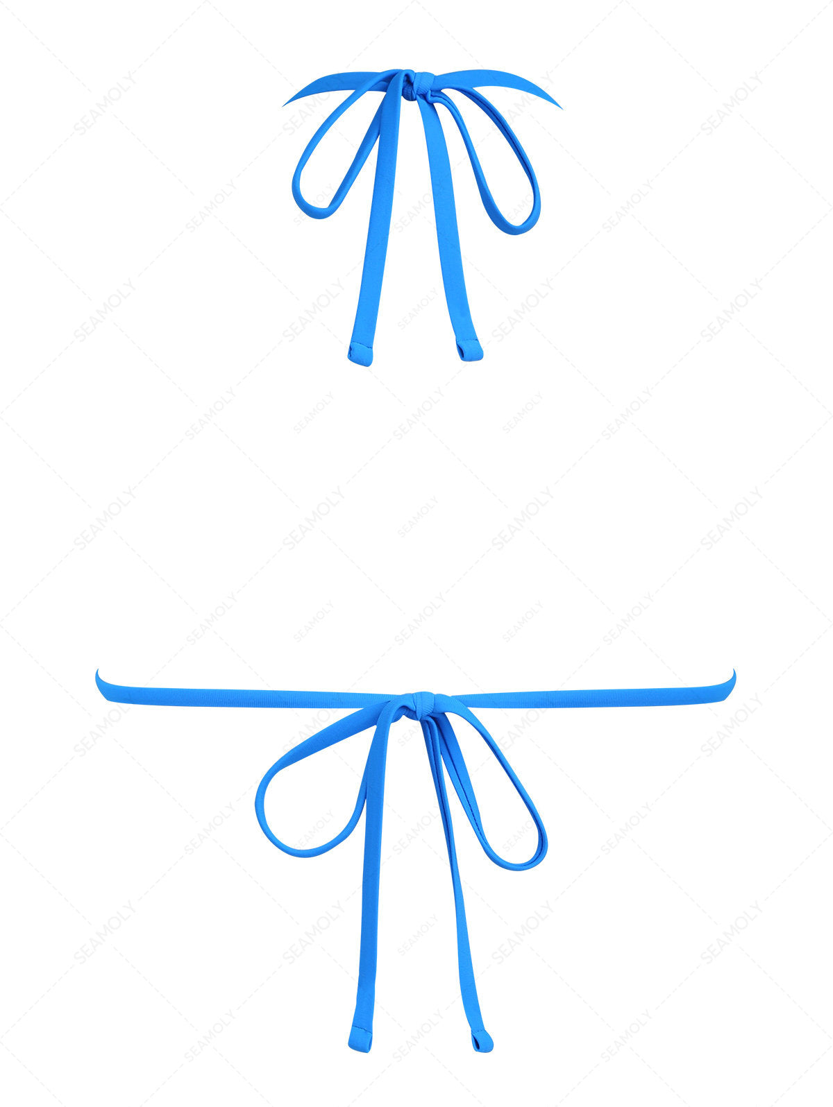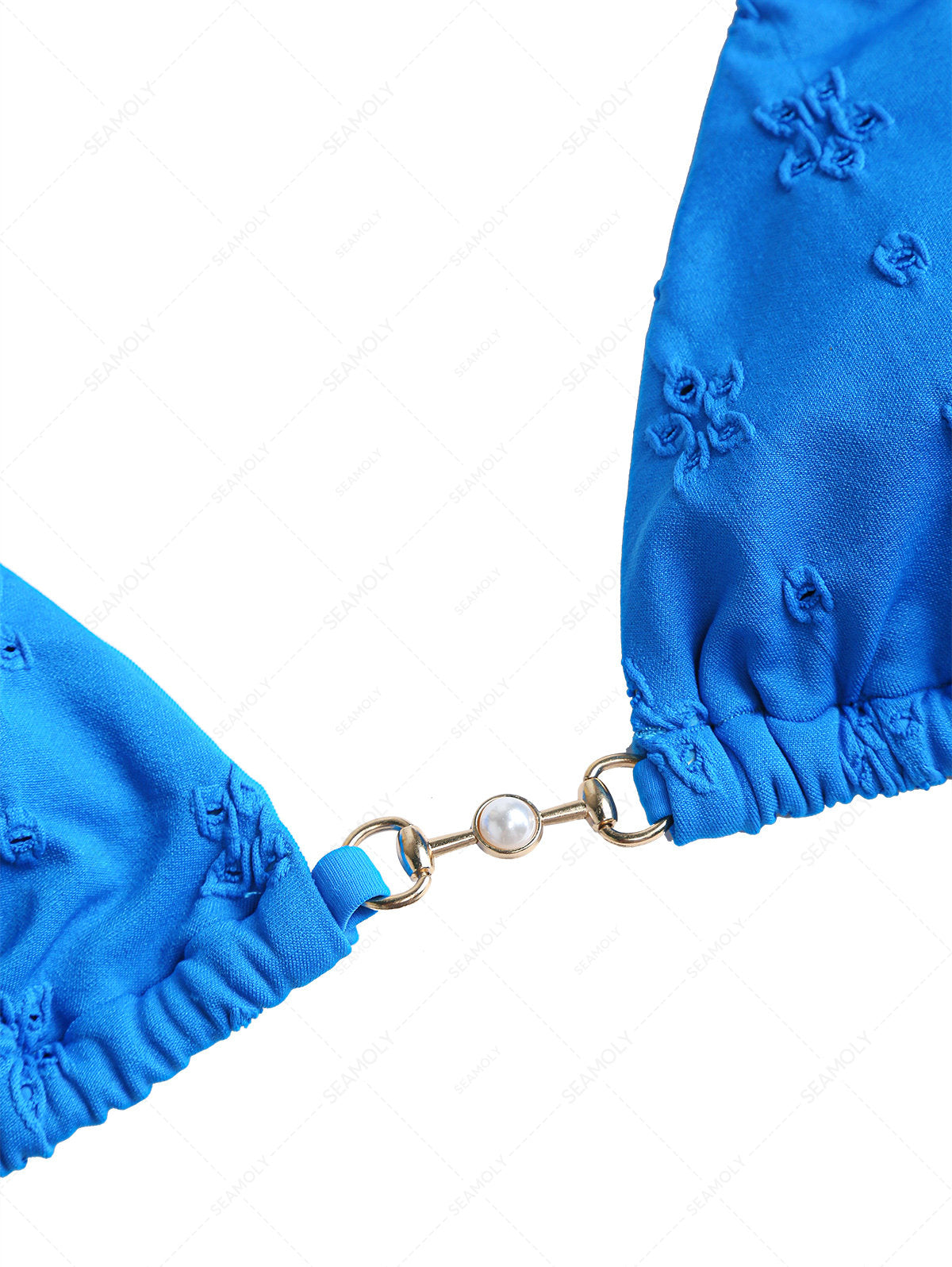 Blue Recycled Fabric Jacquard Faux Pearl Halter Triangle Bikini Top