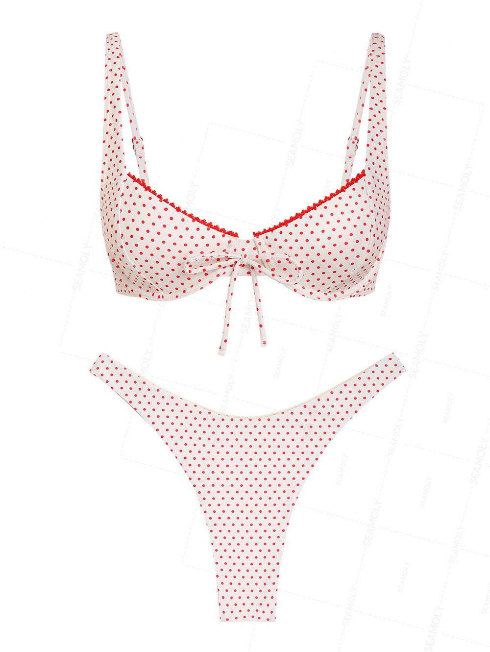 Seamolly Polka Dot Lace Bowknot Underwire Balconette Bikini Set