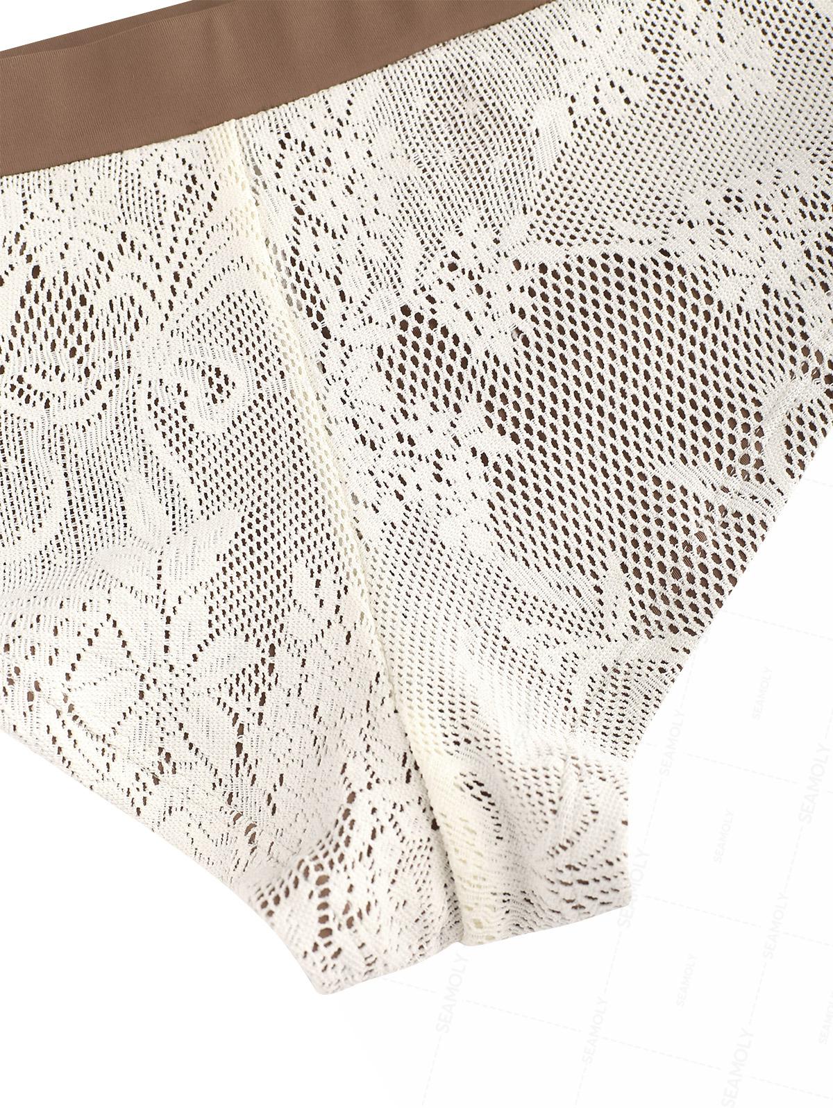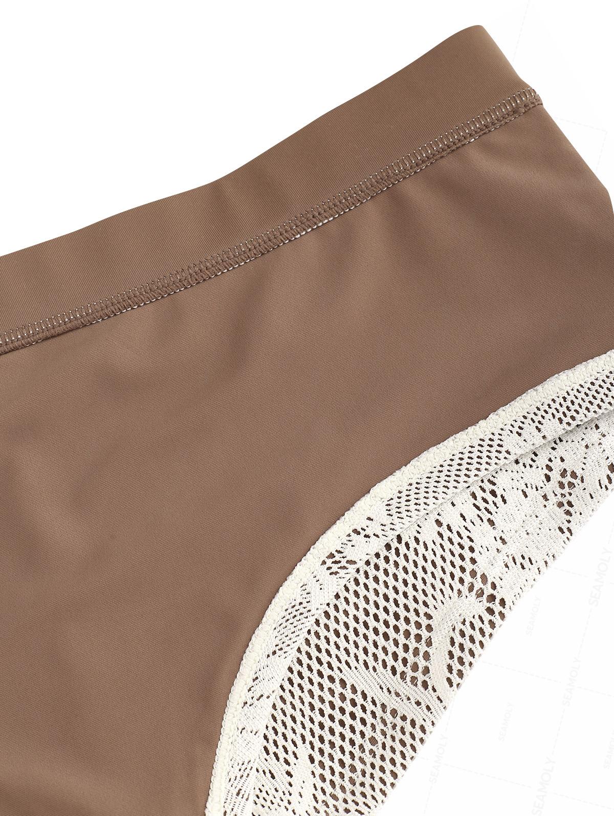 Seamolly Brown Contrast Binding Lace Shell Decor Cheeky Boyshorts Bikini Set
