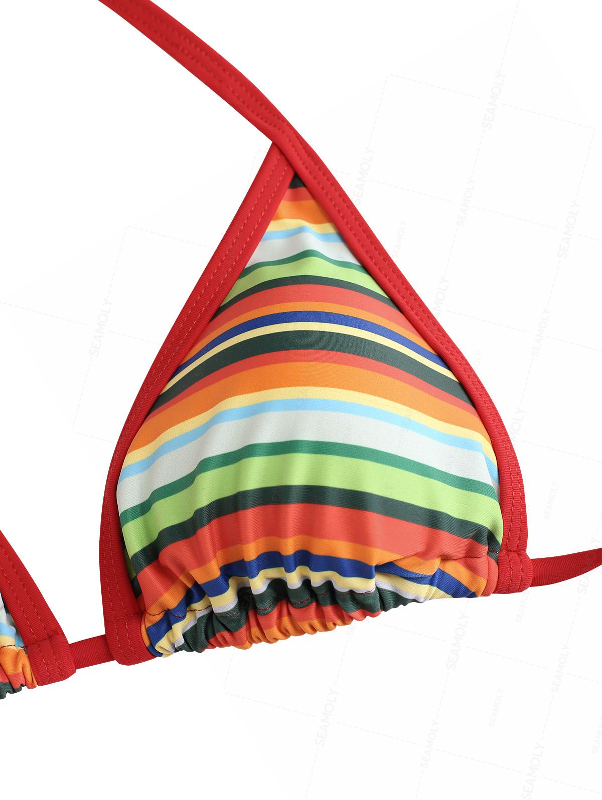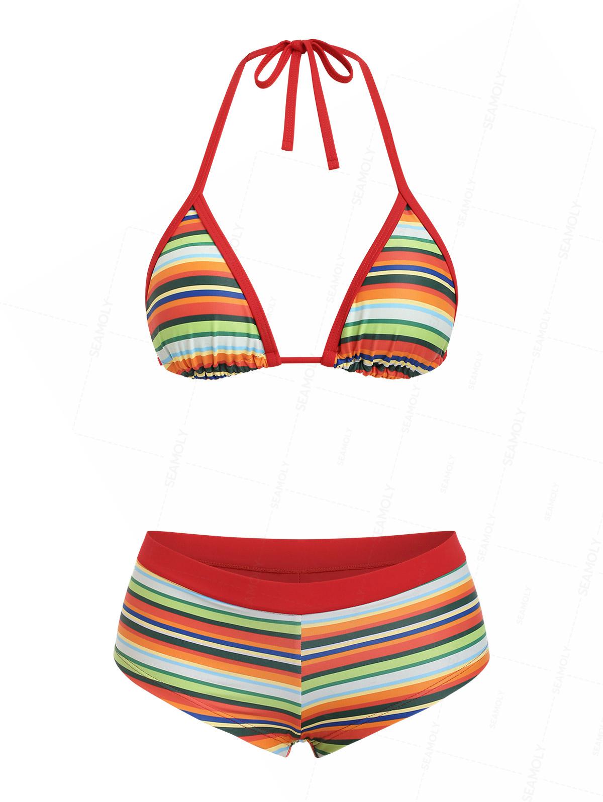 Seamolly Striped Contrast Binding Halter Triangle Cheeky Boyshorts Bikini Set