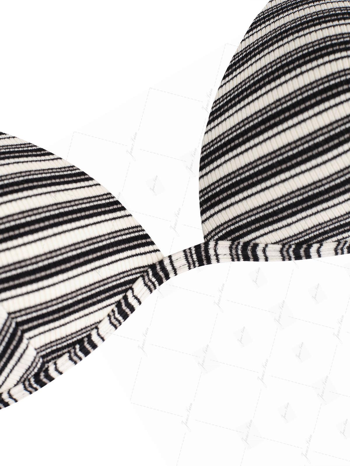 Black Knit Striped Ribbed Hard Cup Support Halter Triangle Bikini Top