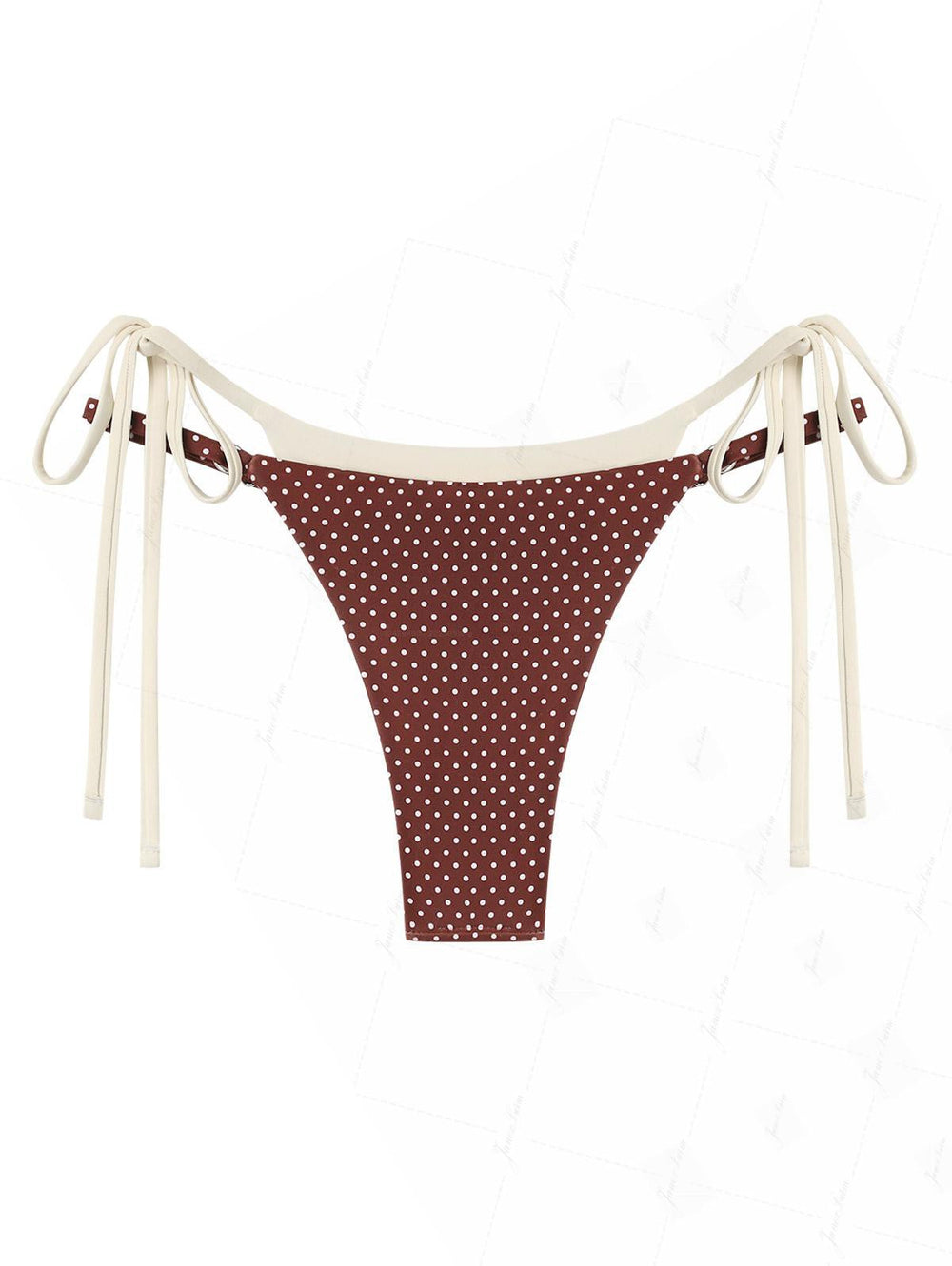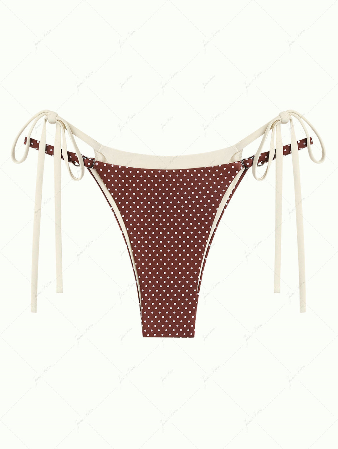 Brown Polka Dot Print Tie Side Double Layer Bikini Bottom