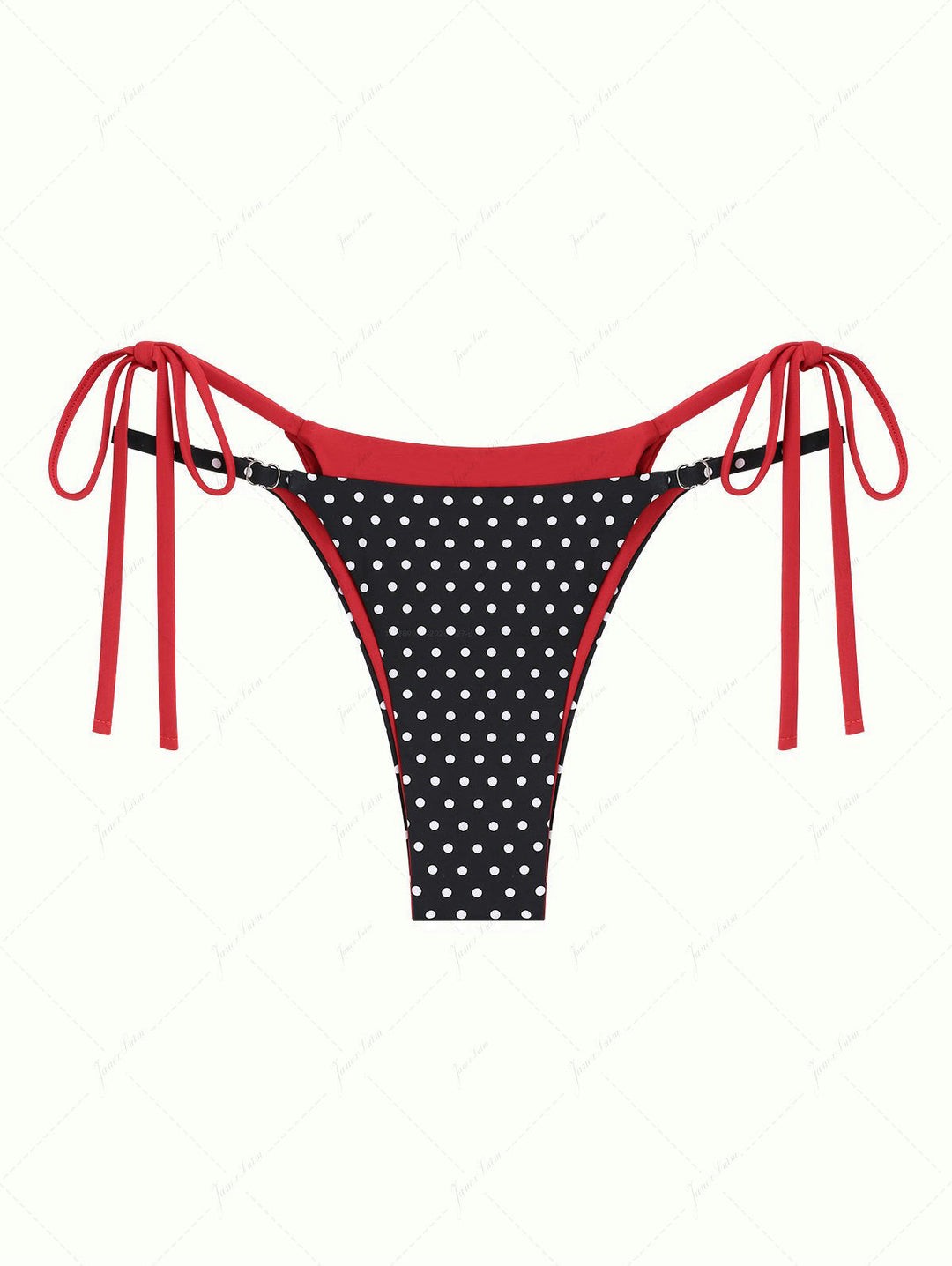Black Contrast Color Polka Dot Print Double Layer Bikini Bottom