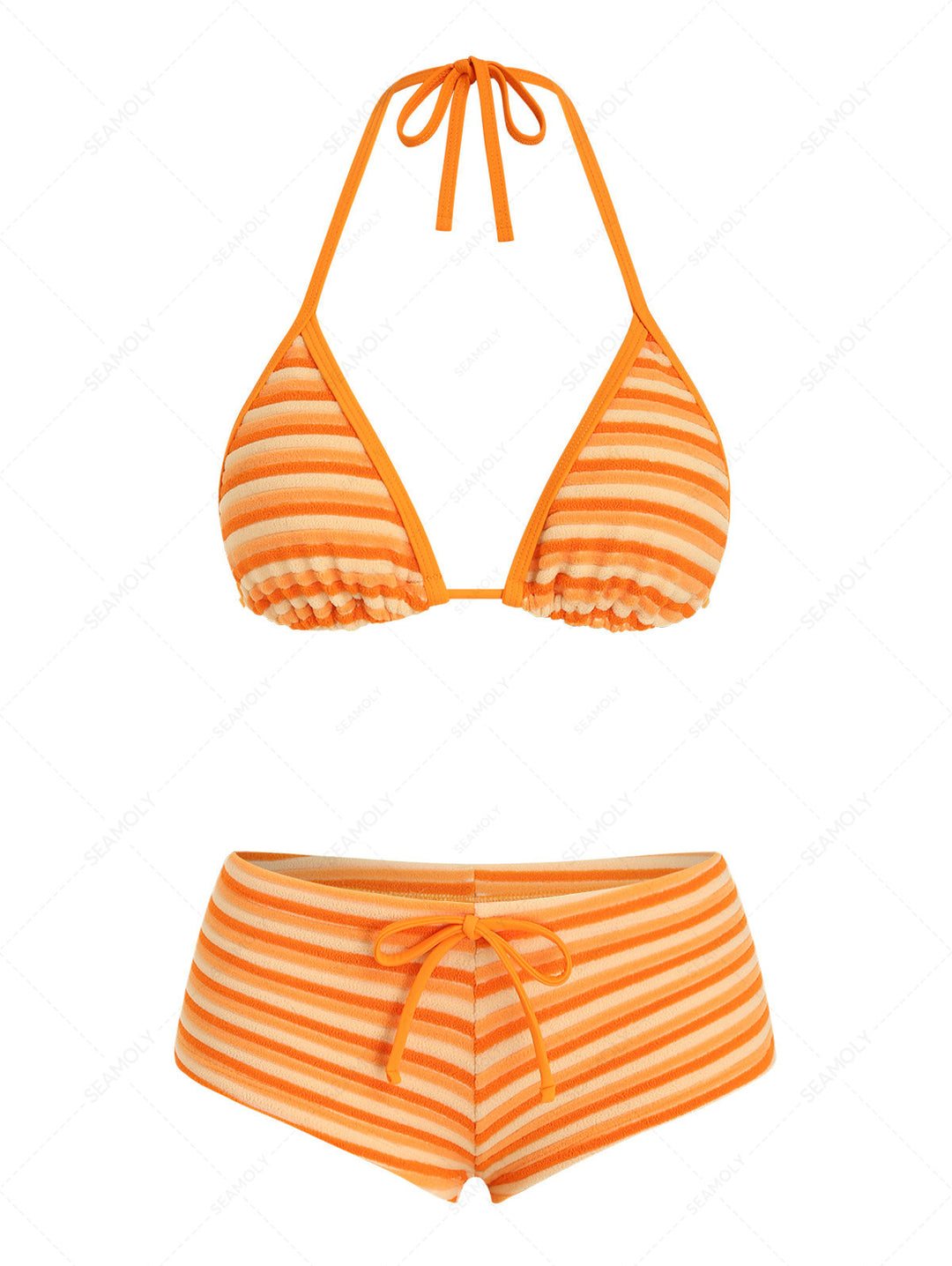 Seamolly Toweling Terry Cloth Striped Contrast Binding Cheeky Boyshorts Bikini Set