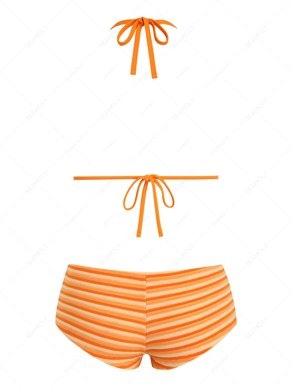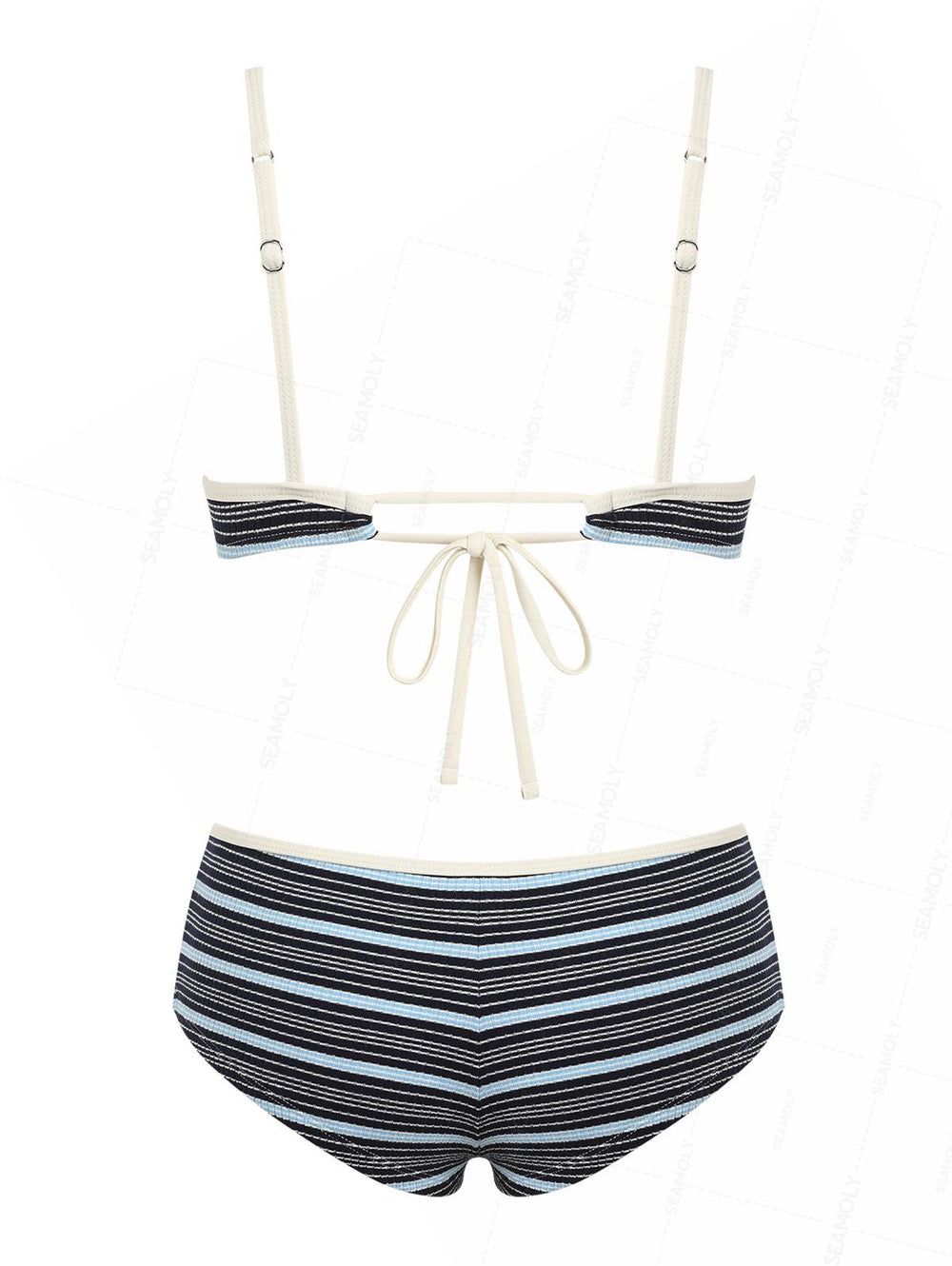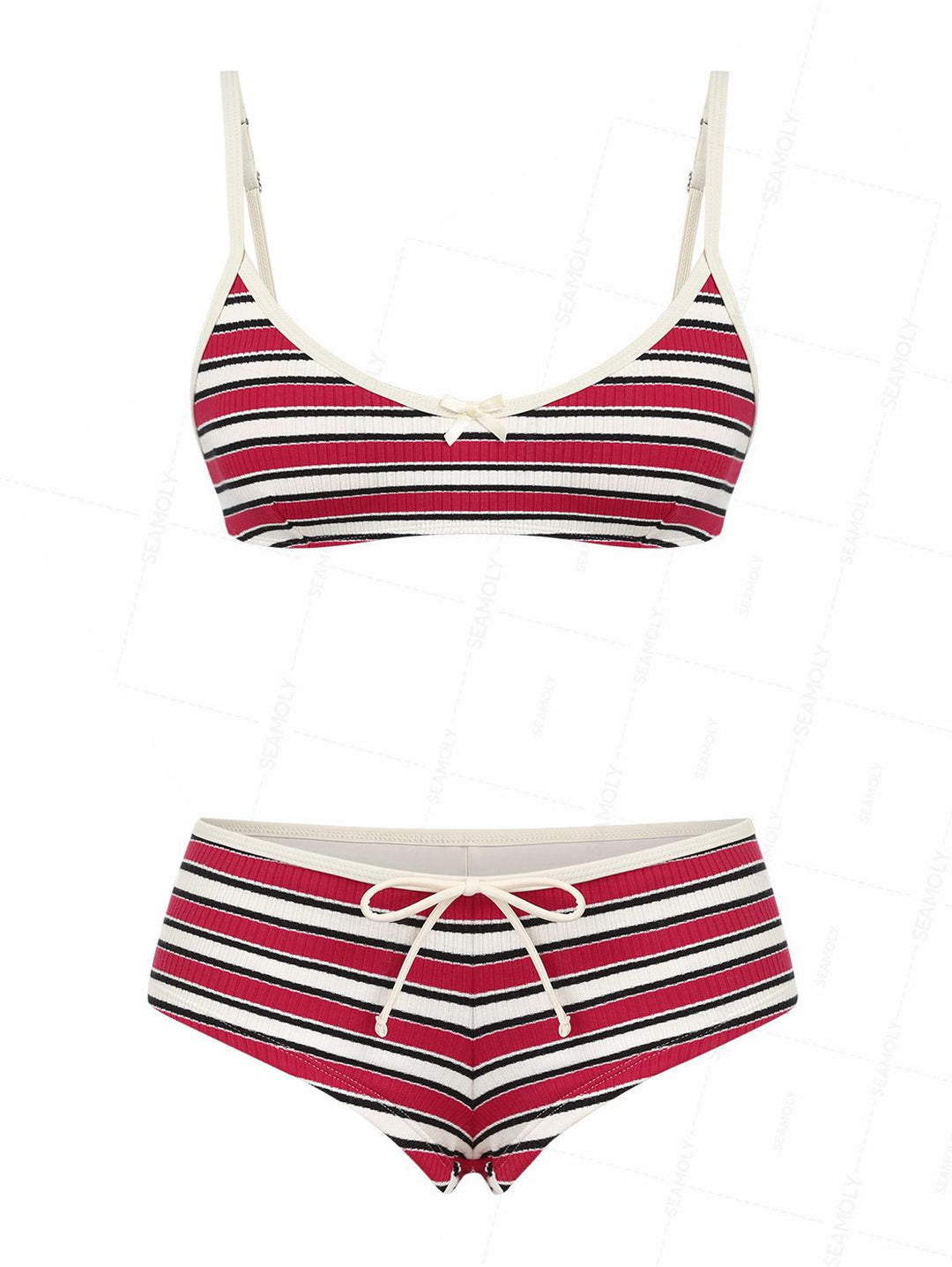 Seamolly Striped Bowknot Halter Triangle Boyshorts Bikini Set