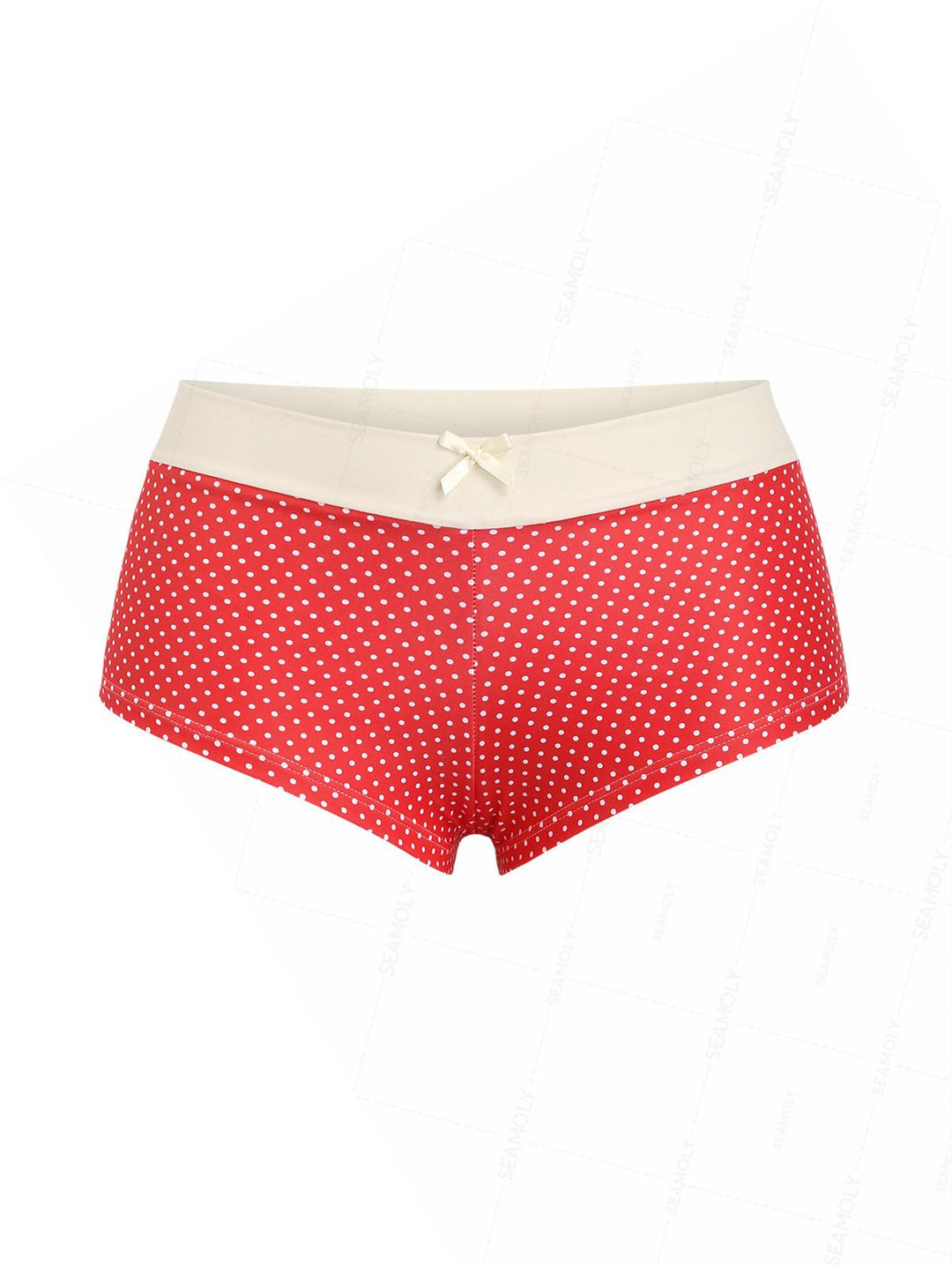 Seamolly Polka Dots Bowknot Low Rise Bikini Bottom Cheeky Swim Boyshorts
